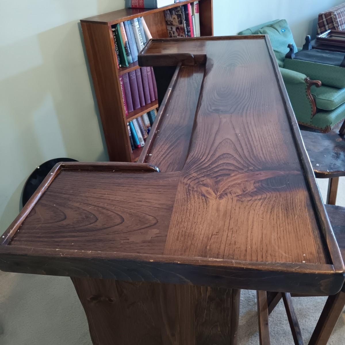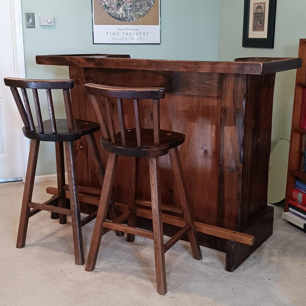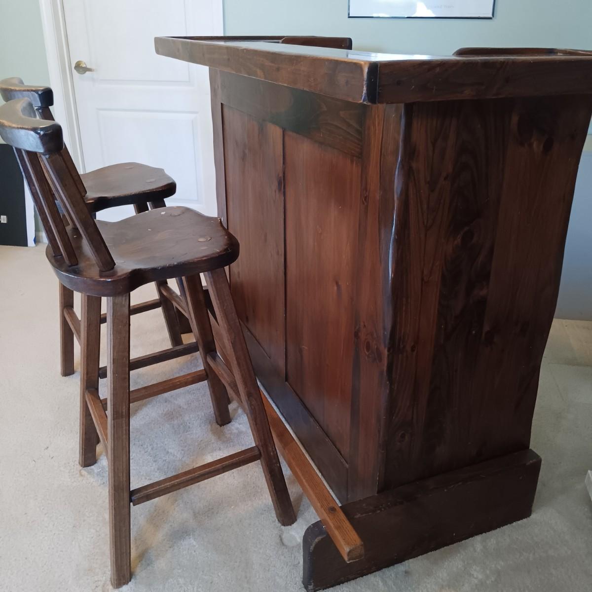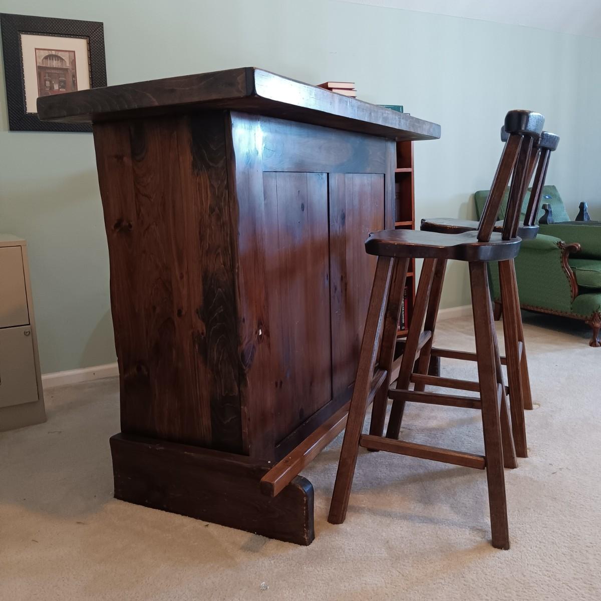 LOT 2: Rustic-Style Wood Pub Table with Bar Stools