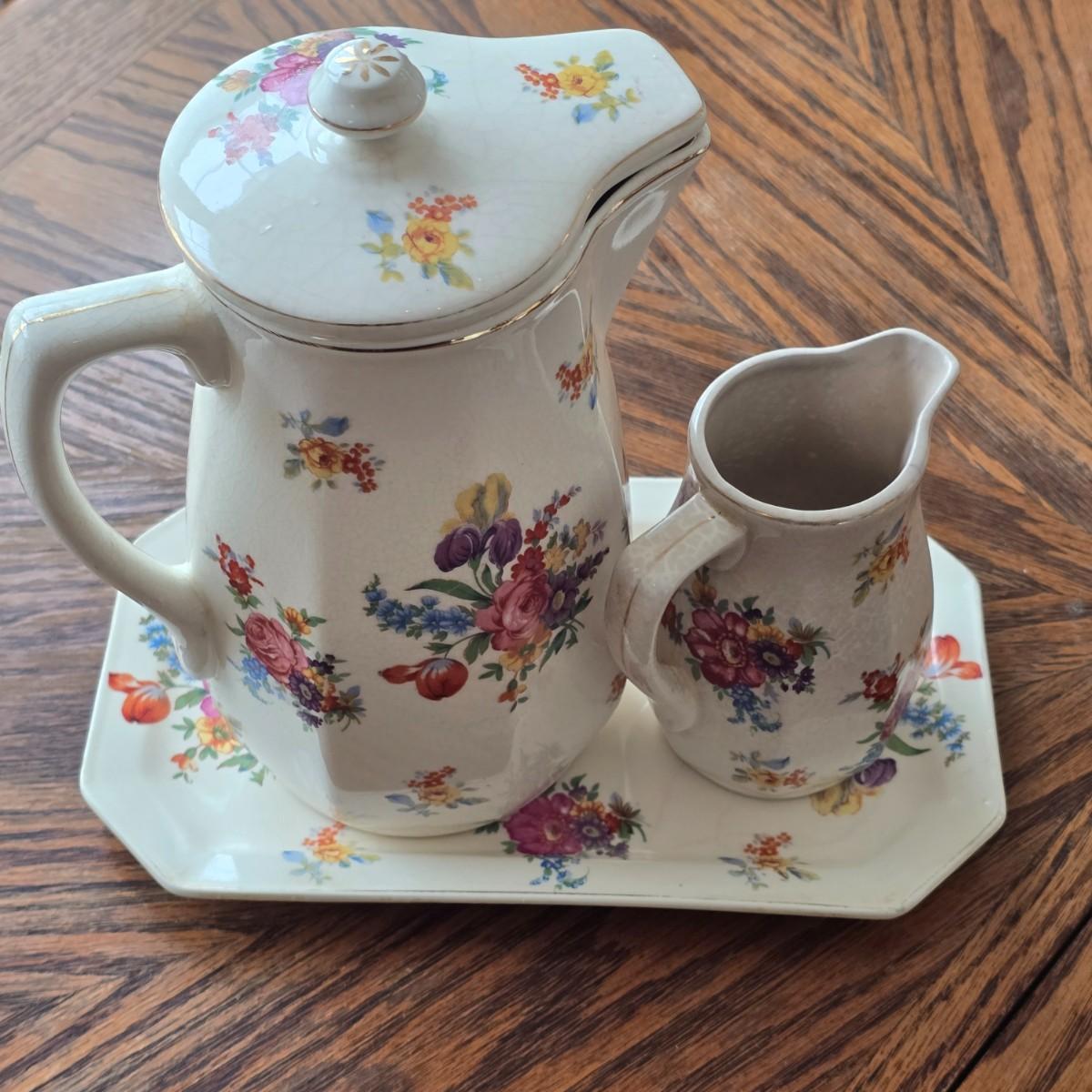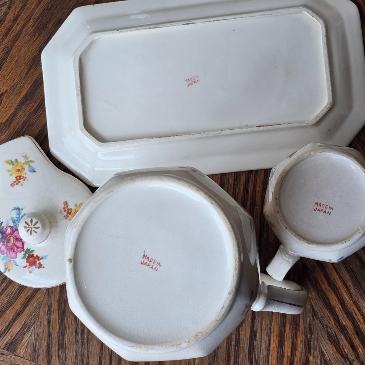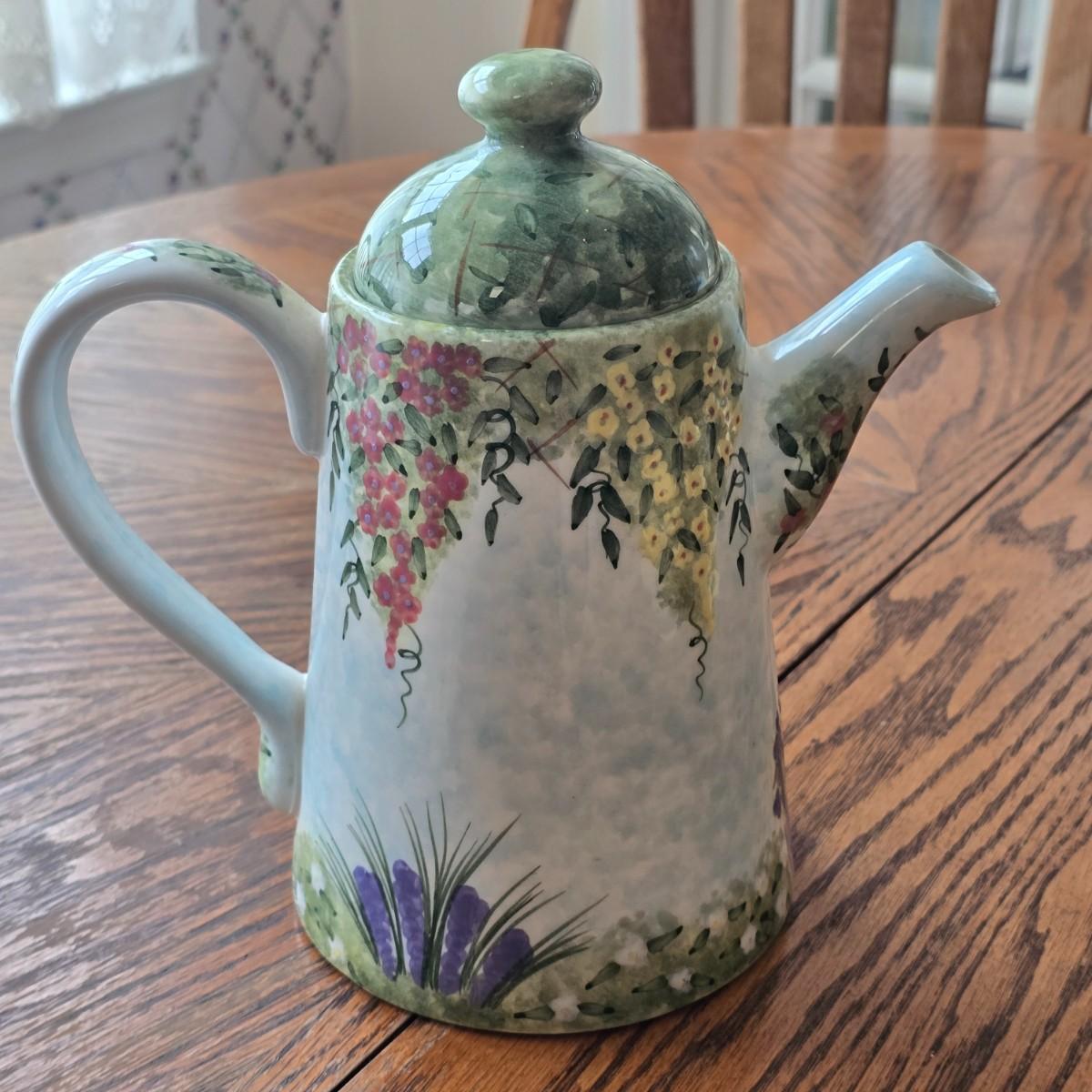 LOT 41: Collection of Ceramic Tea Pots; Charter Club Salad Plates Fruit Motiff & MSC China Joie de Vivre Jam Jar with Lid & Spoon