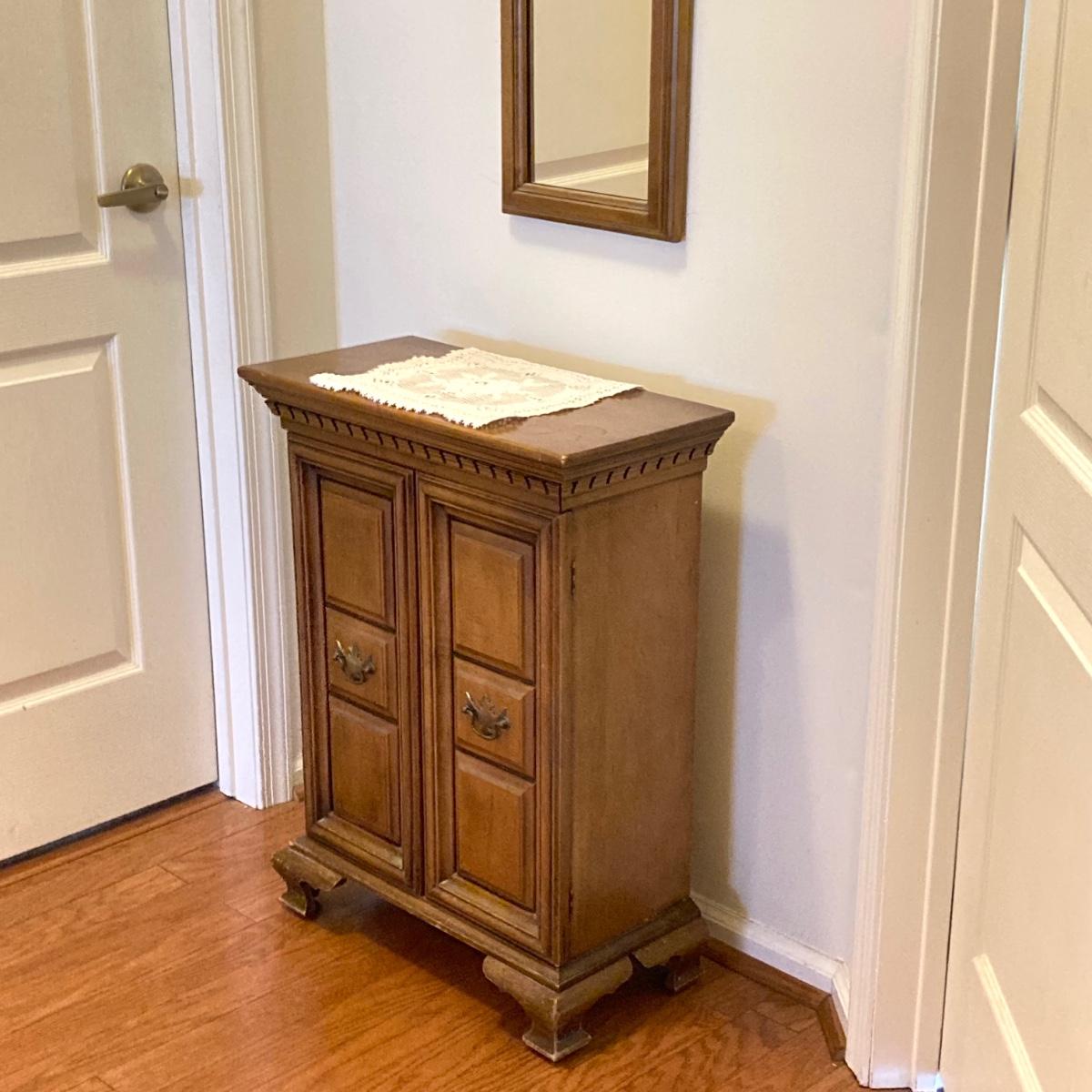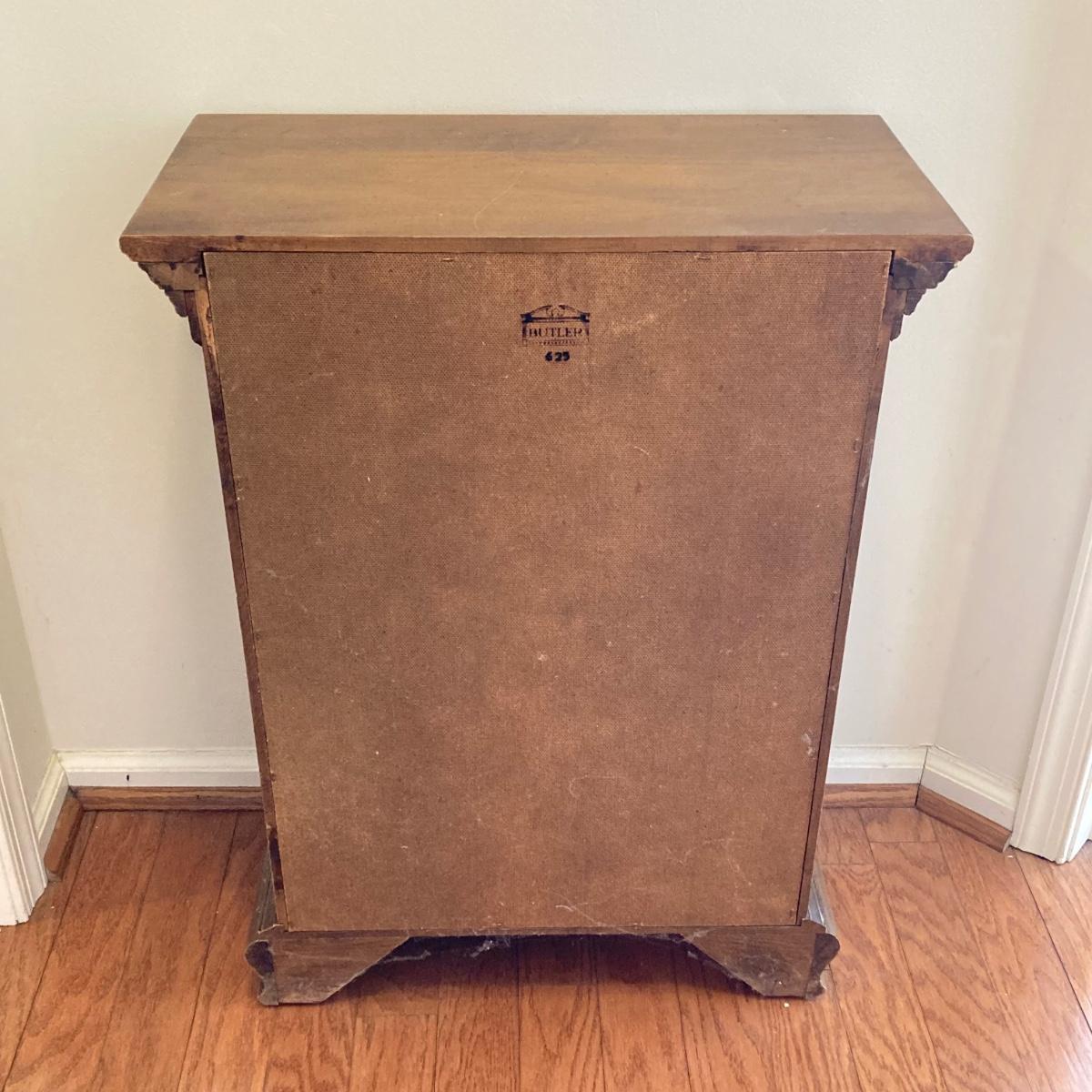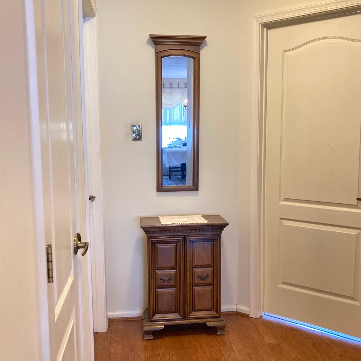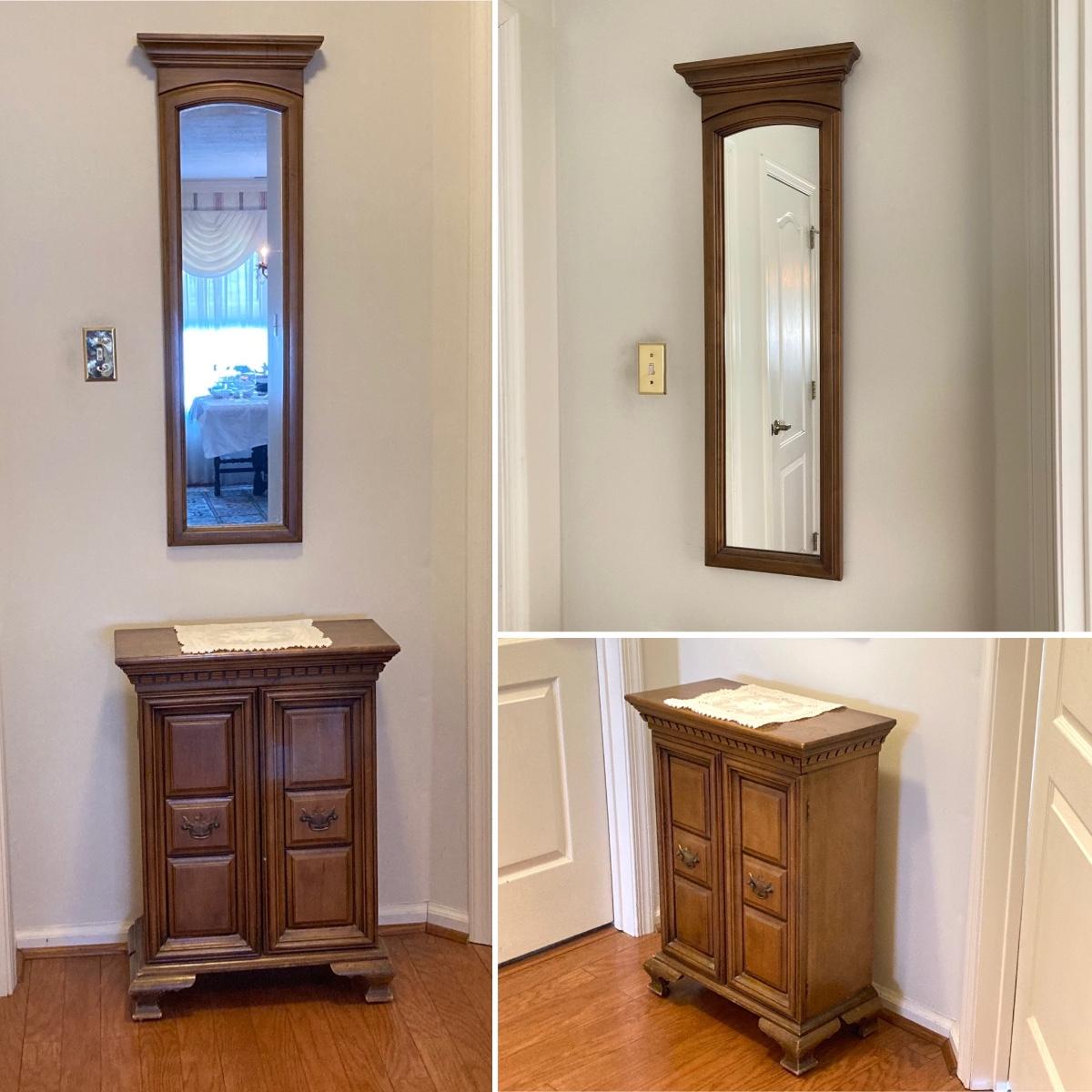 LOT 58: Butler 625 Accent Cabinet / Table with Slender Crown Top Wall Mirror