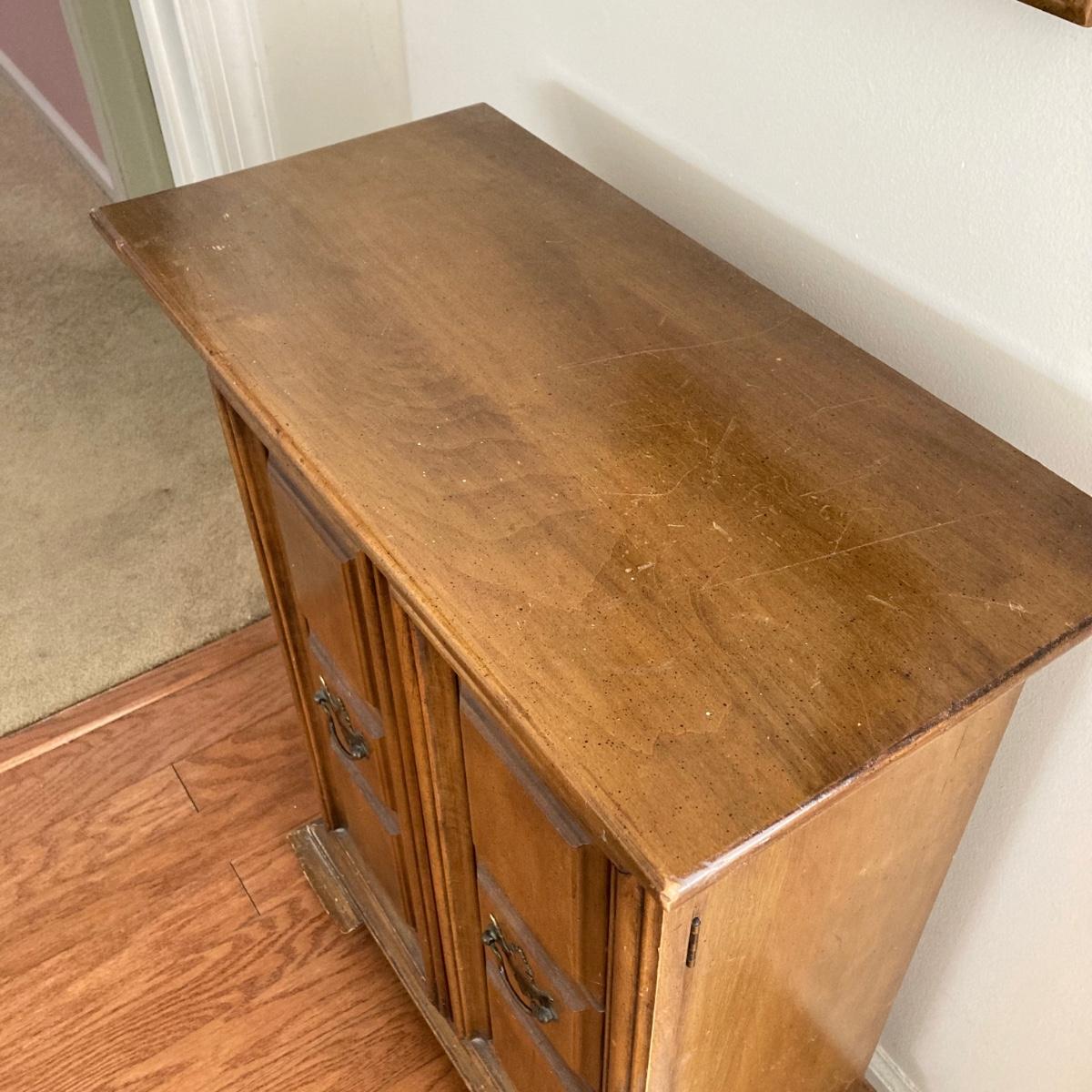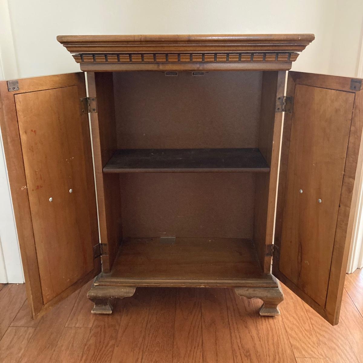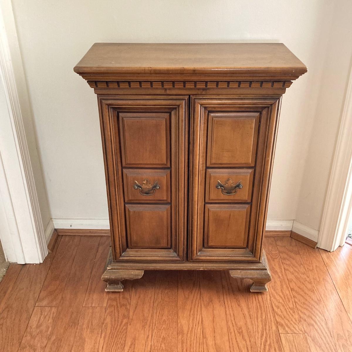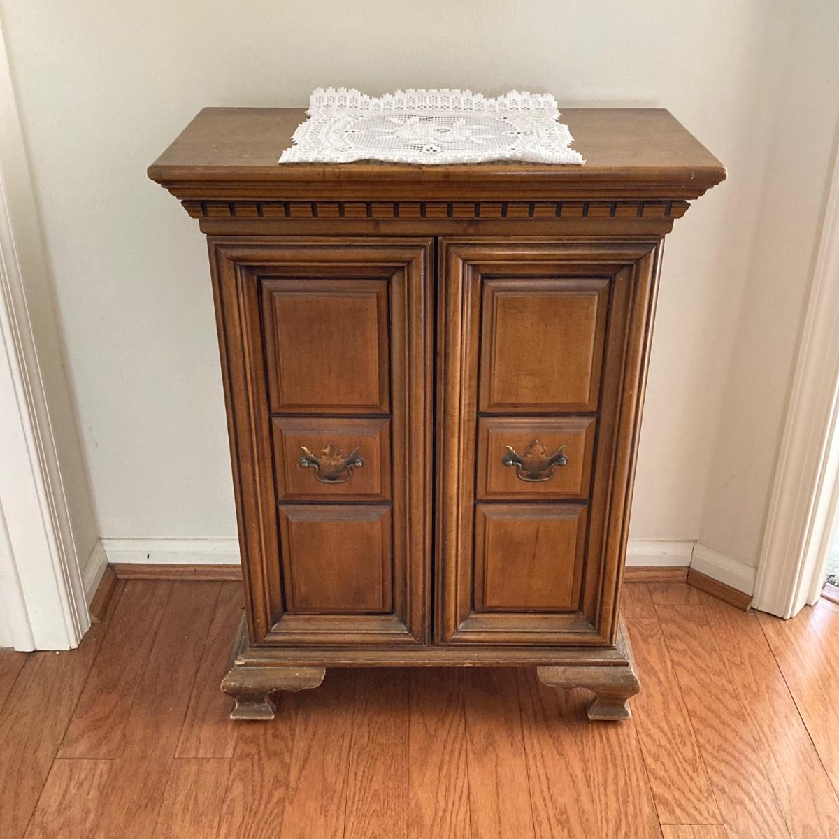 LOT 58: Butler 625 Accent Cabinet / Table with Slender Crown Top Wall Mirror