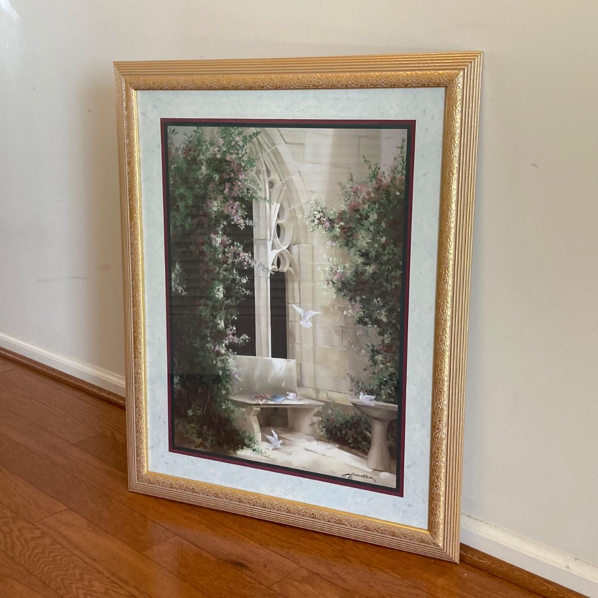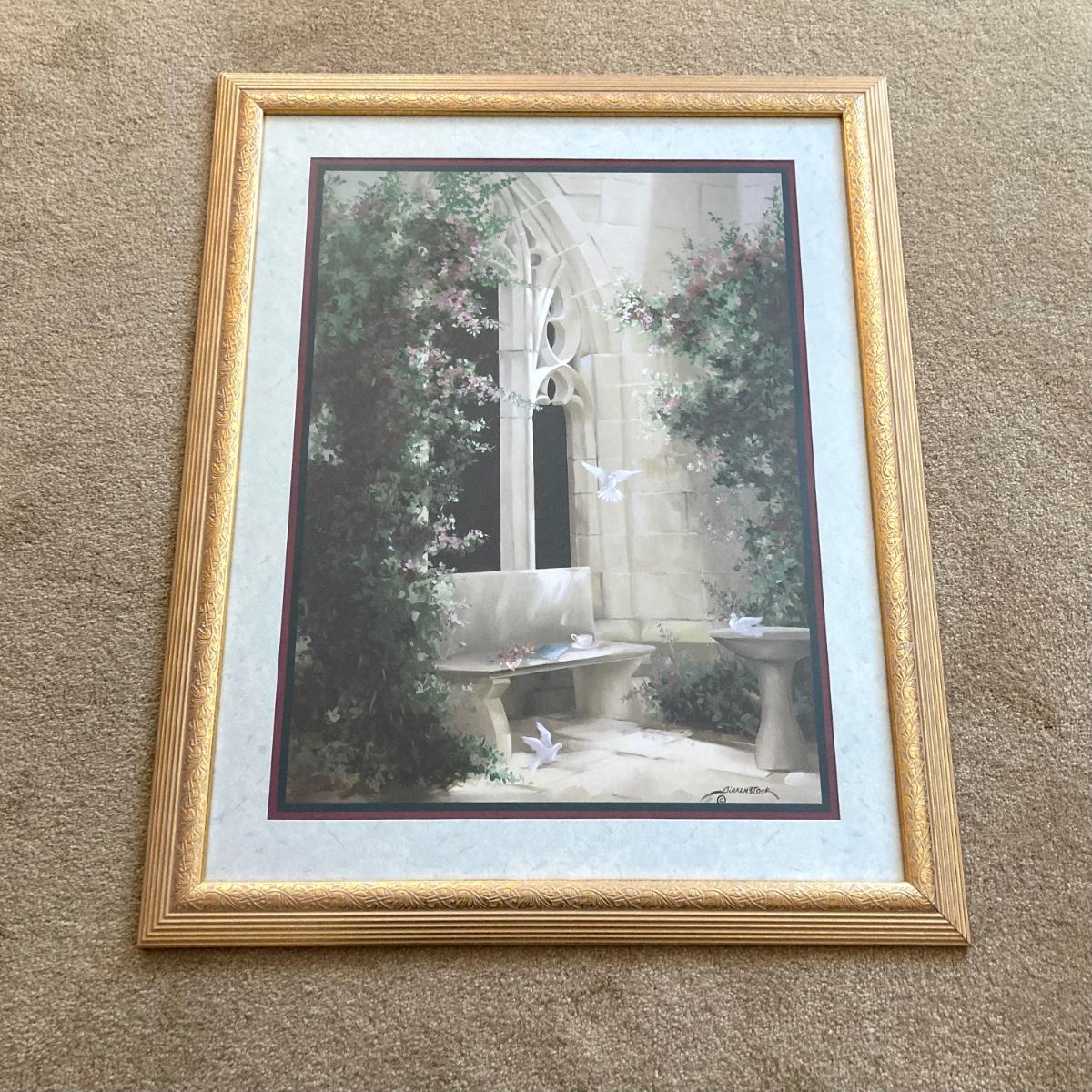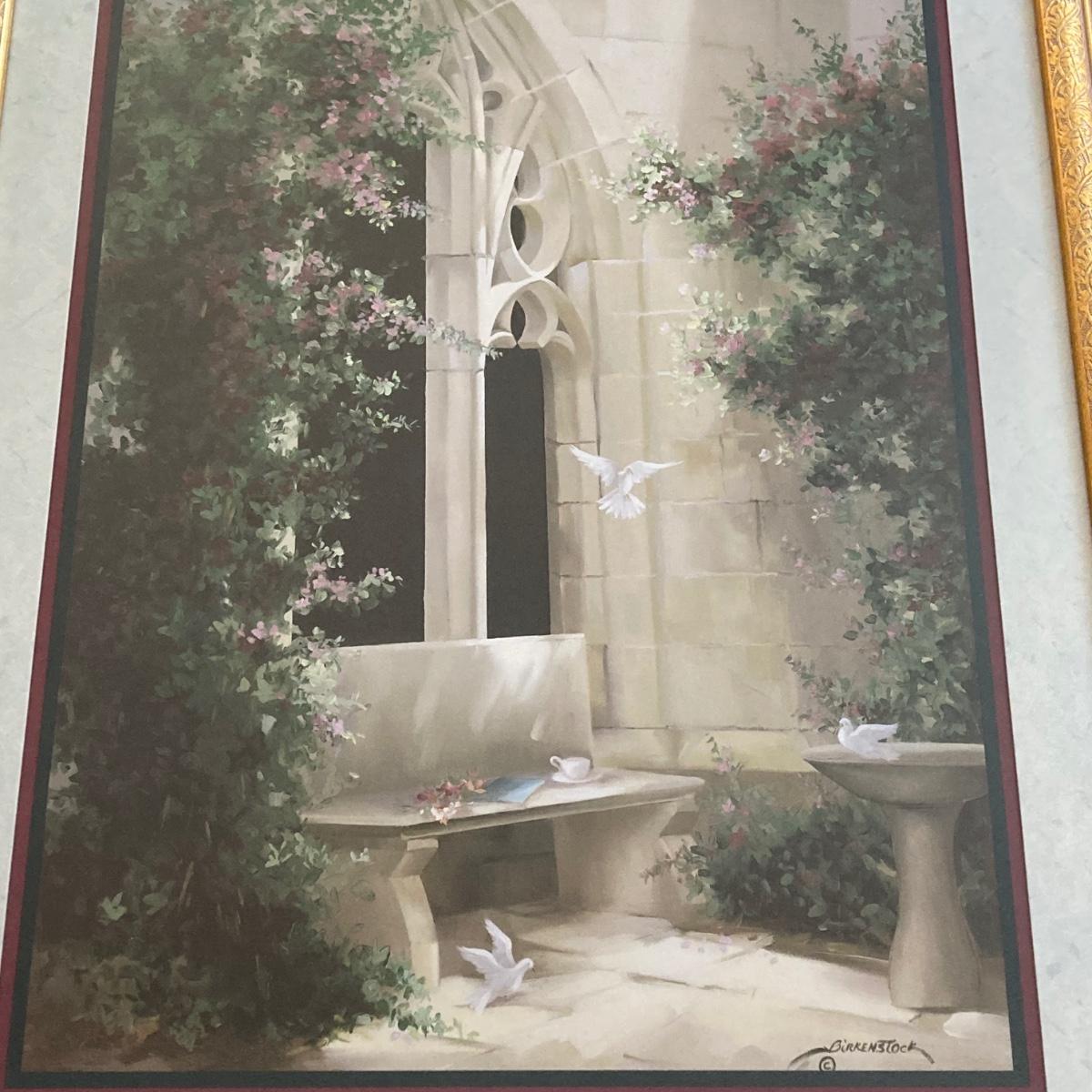 LOT 61: Vintage Home Interiors Birkenstock Doves Courtyard Gold Framed Wall Hanging
