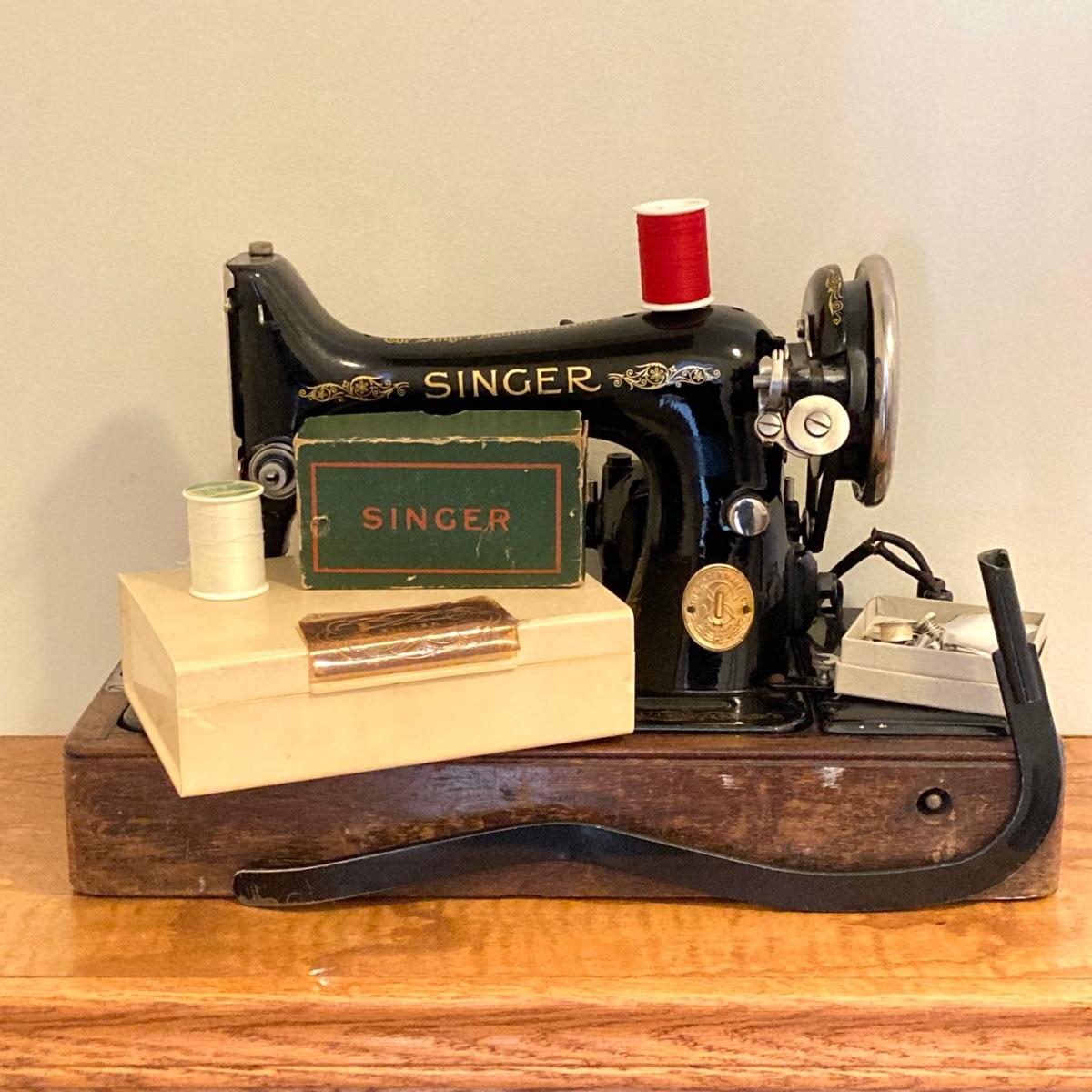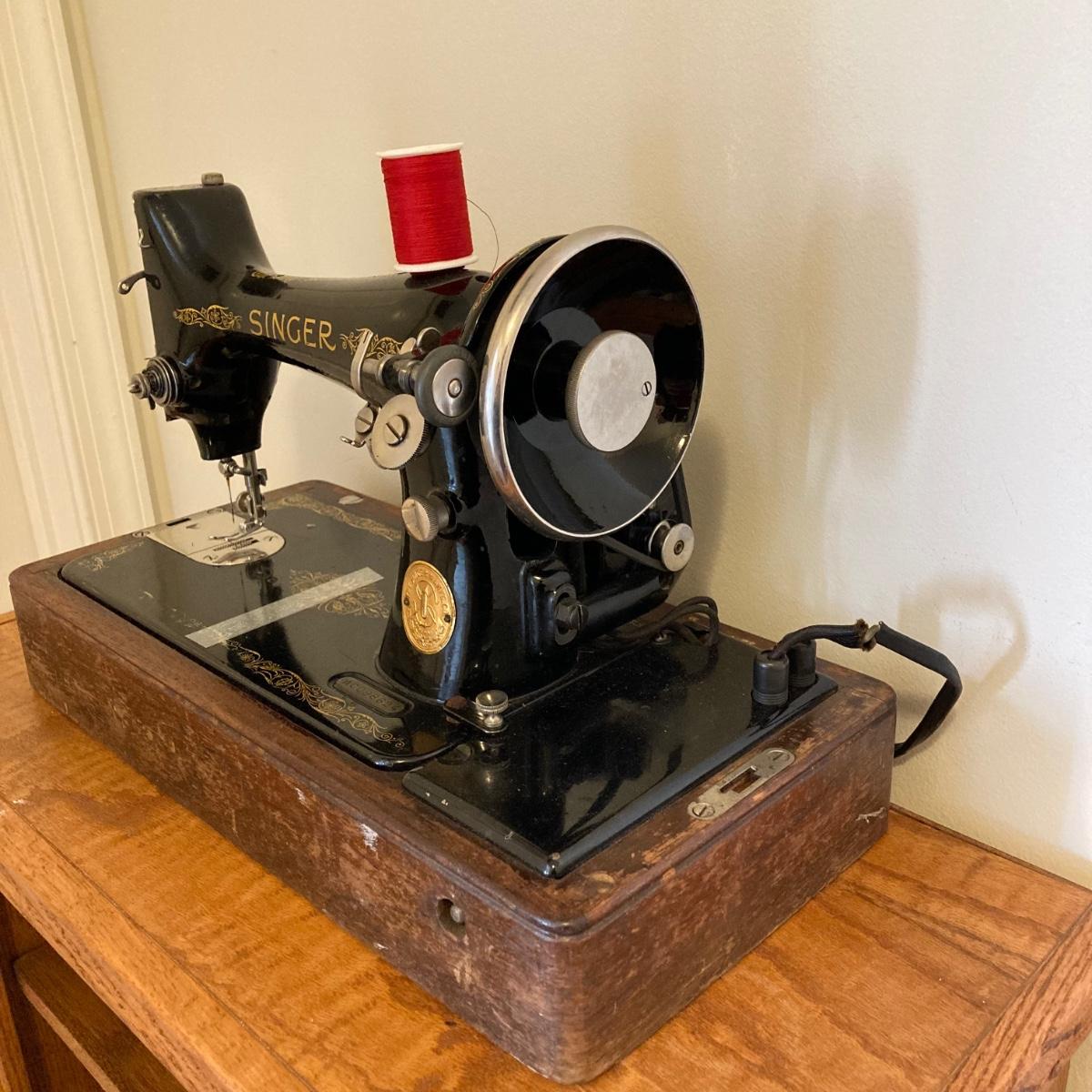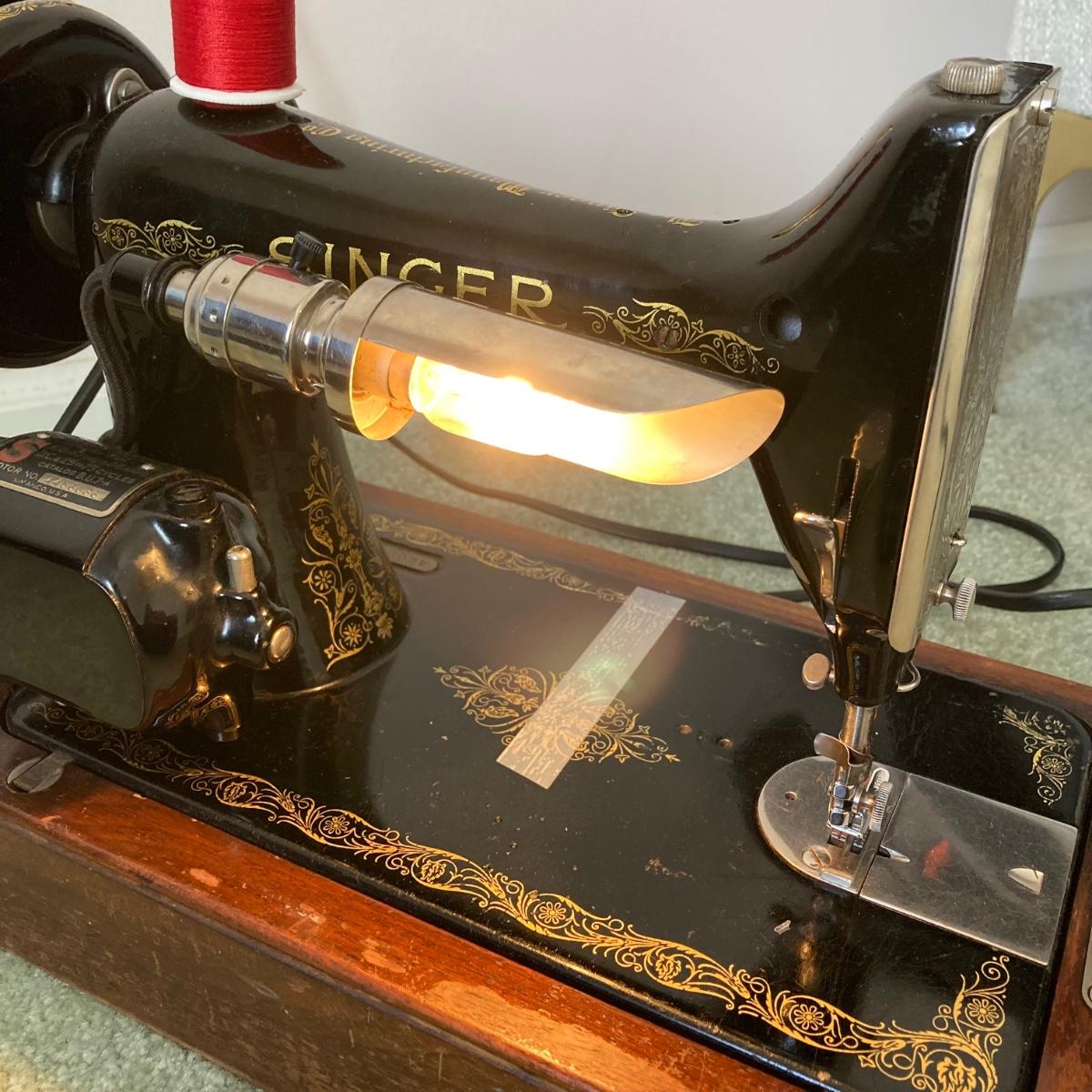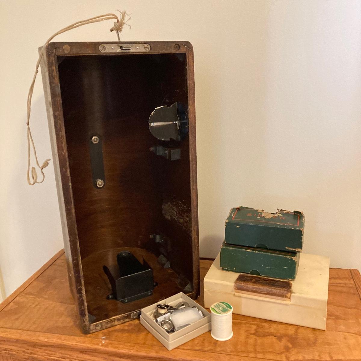 LOT 70: Vintage Singer Sewing Machine AC098624 Motor No. 4456636 with Carry Case with Parts and Accessories