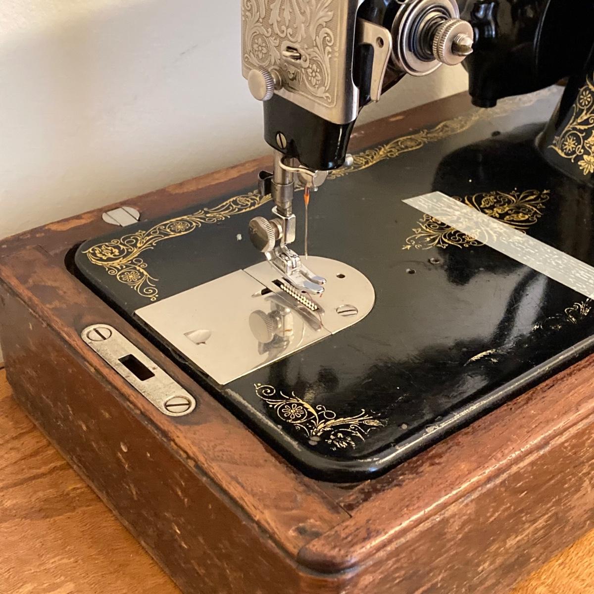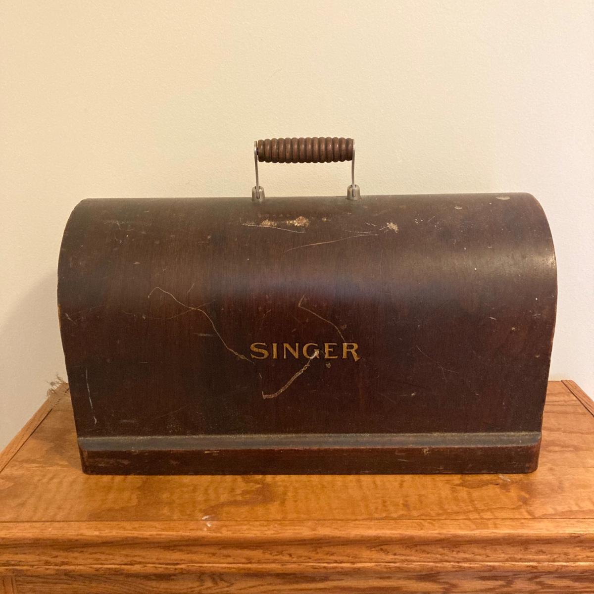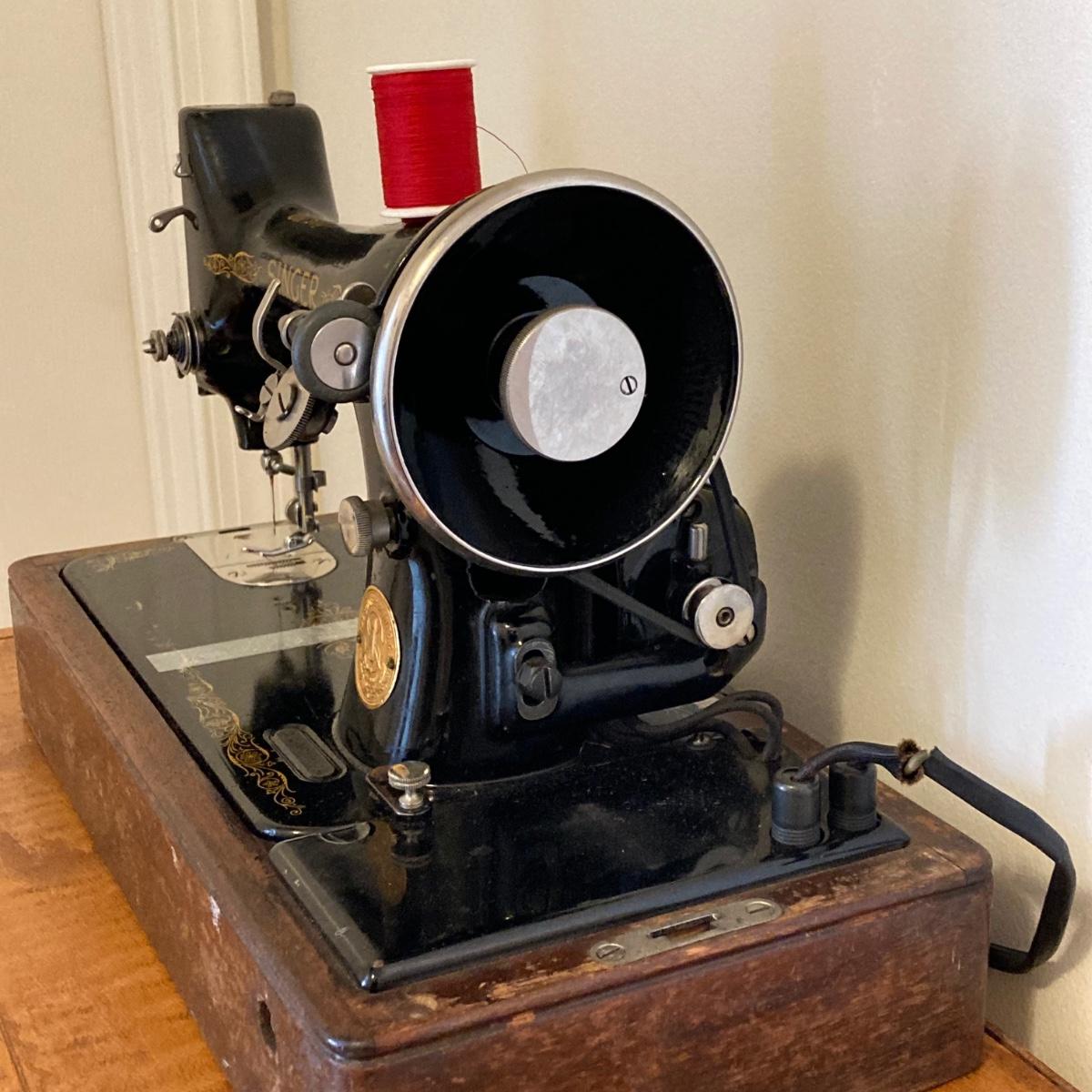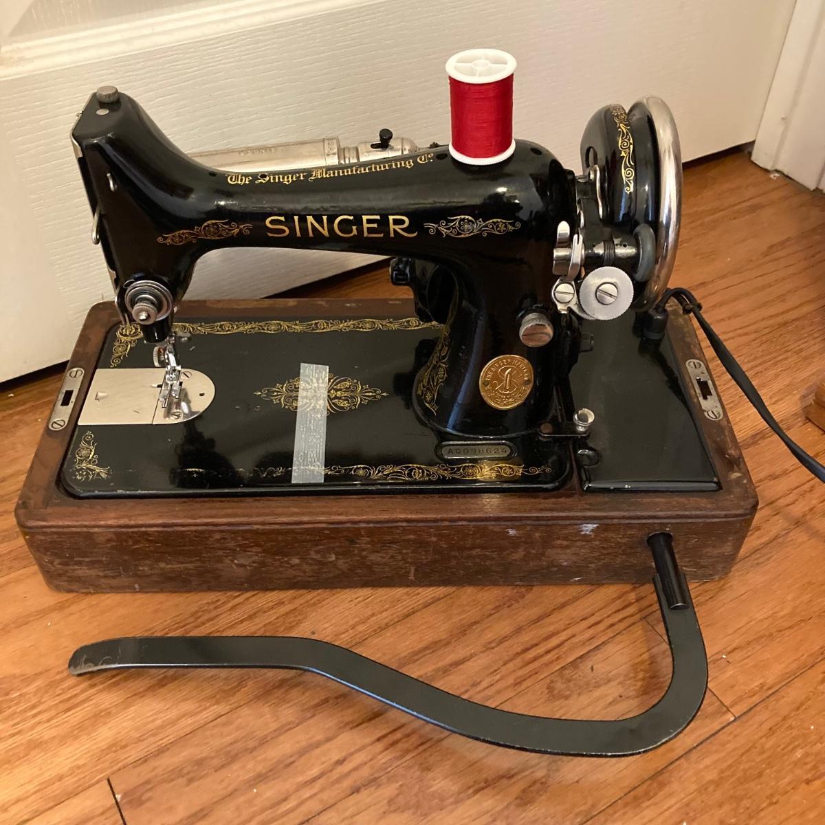 LOT 70: Vintage Singer Sewing Machine AC098624 Motor No. 4456636 with Carry Case with Parts and Accessories