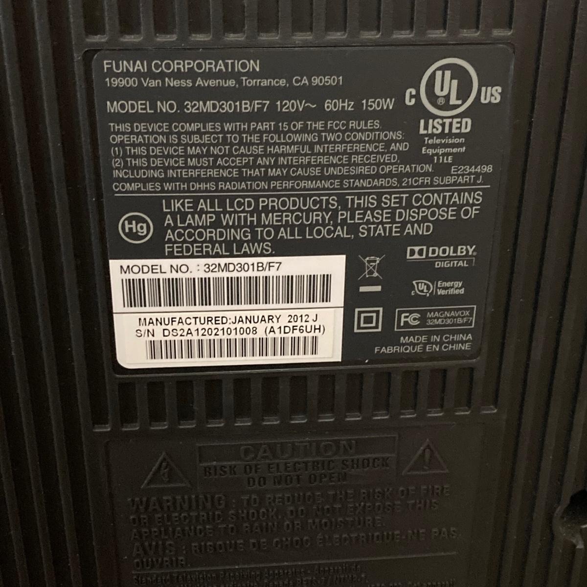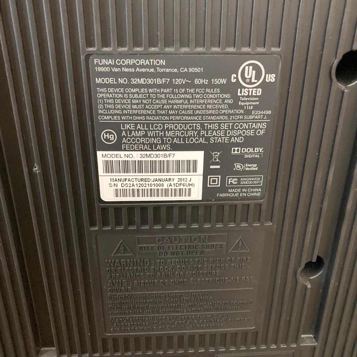 LOT 71: Magnavox TV Model No. 32MD301B/F7 32" Inch with Remote