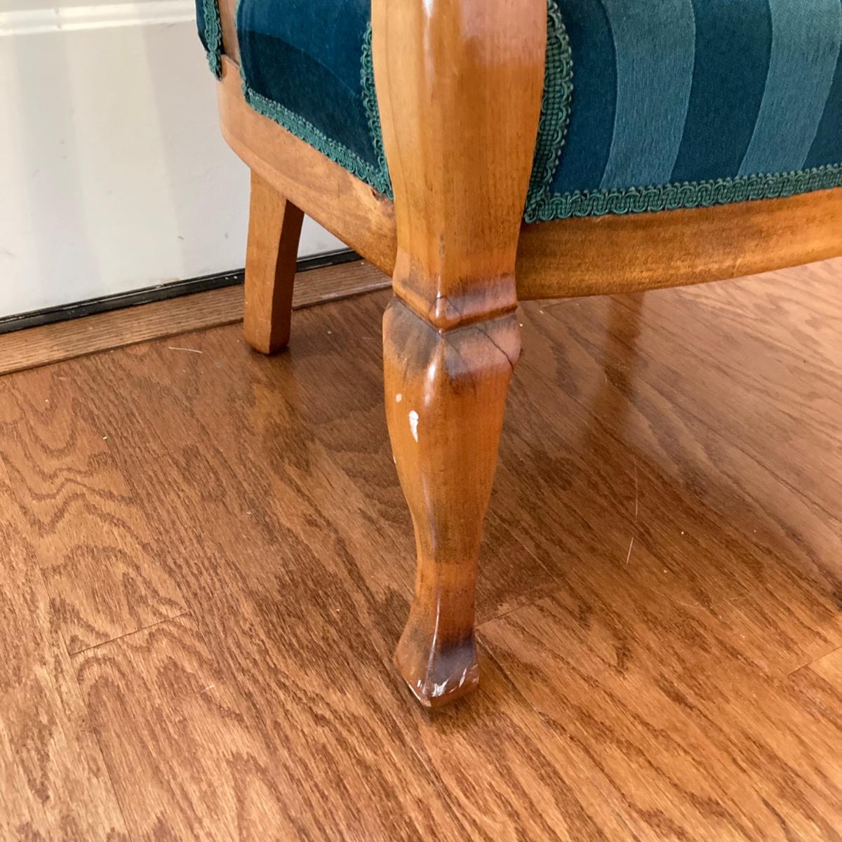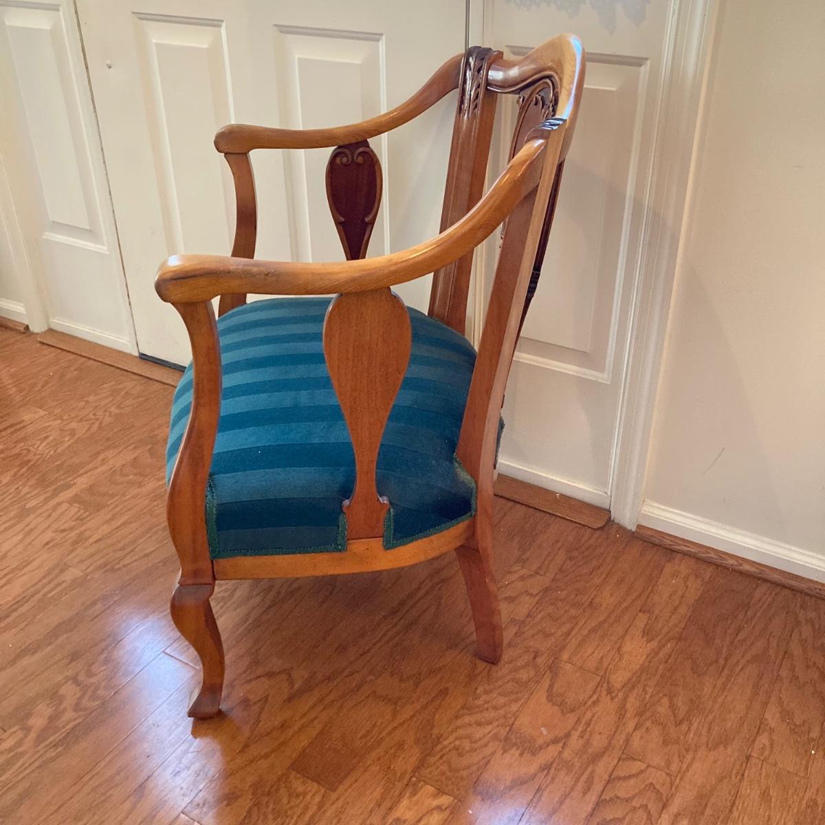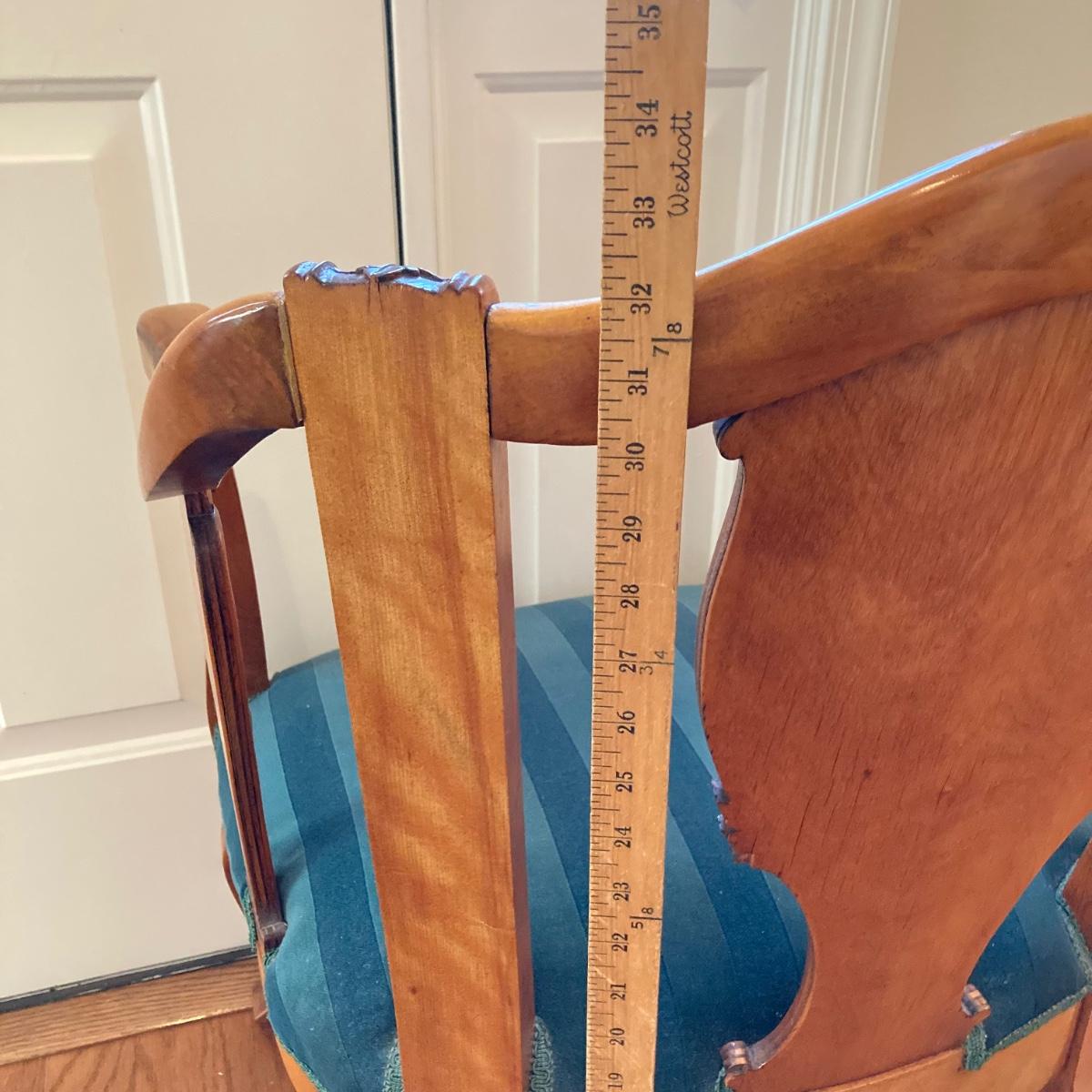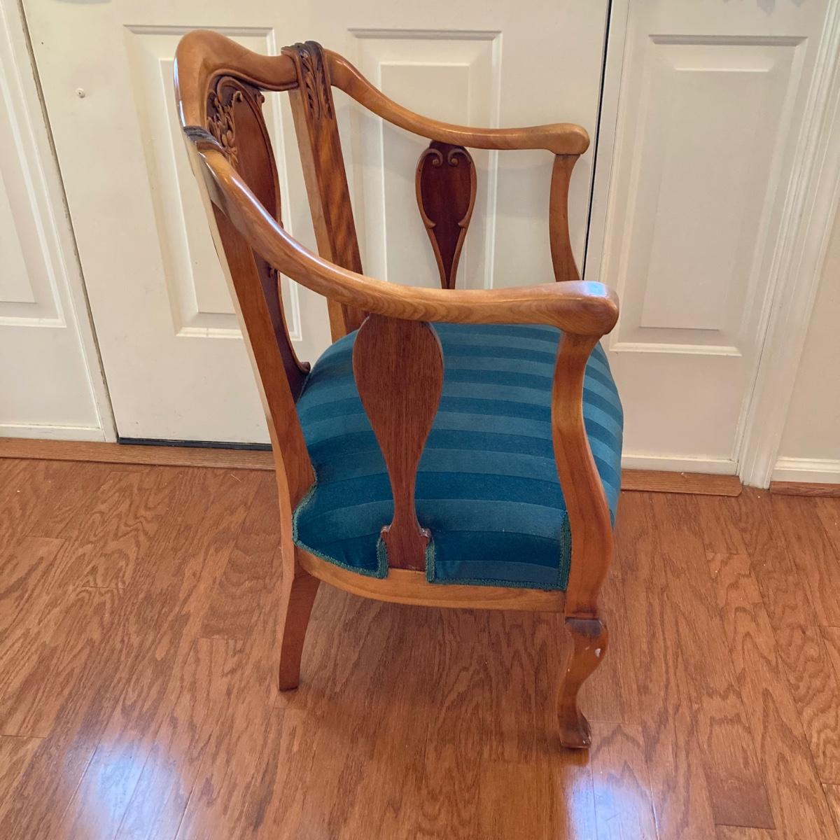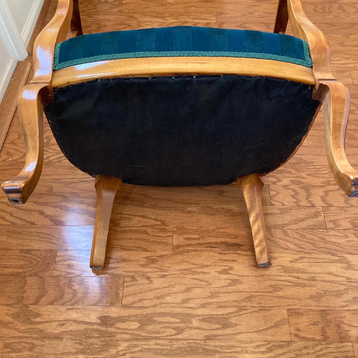LOT 73: Carved Wood Queen Anne Armchair with Velvet Seating