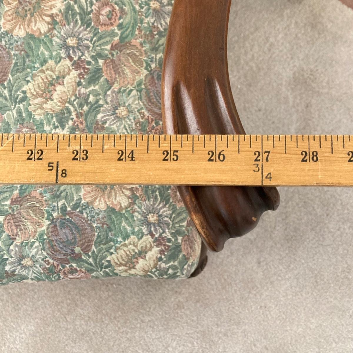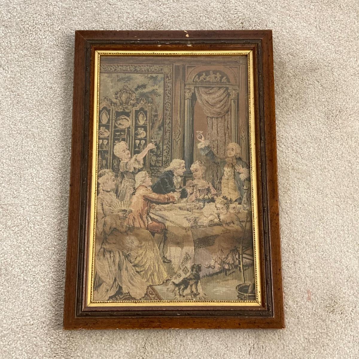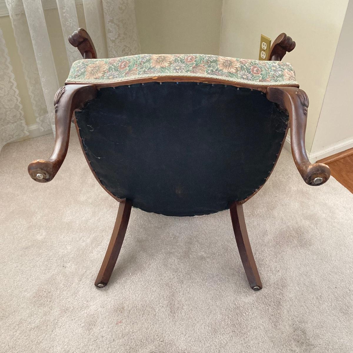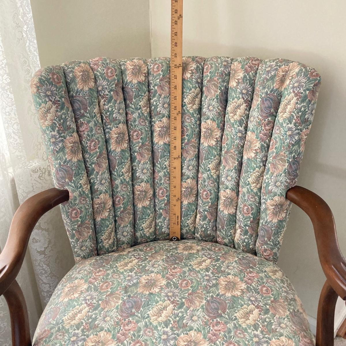 LOT 76: Floral Upholstery Armchair with Framed Tapestry Style Framed Wall Hanging