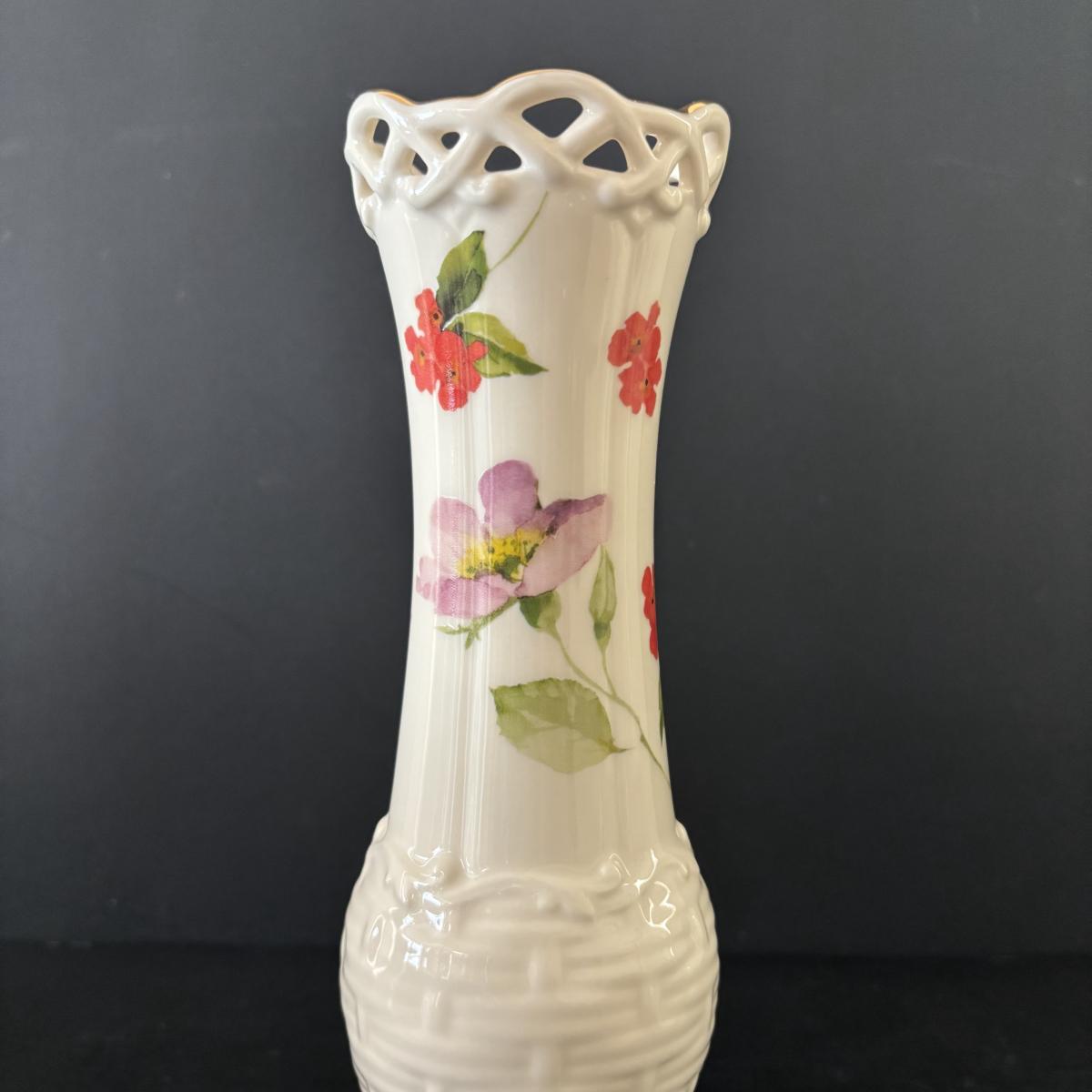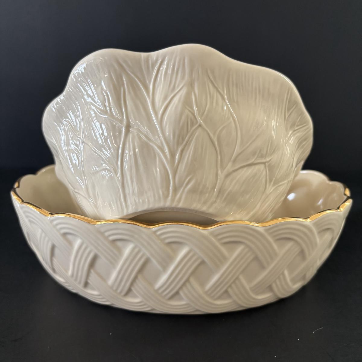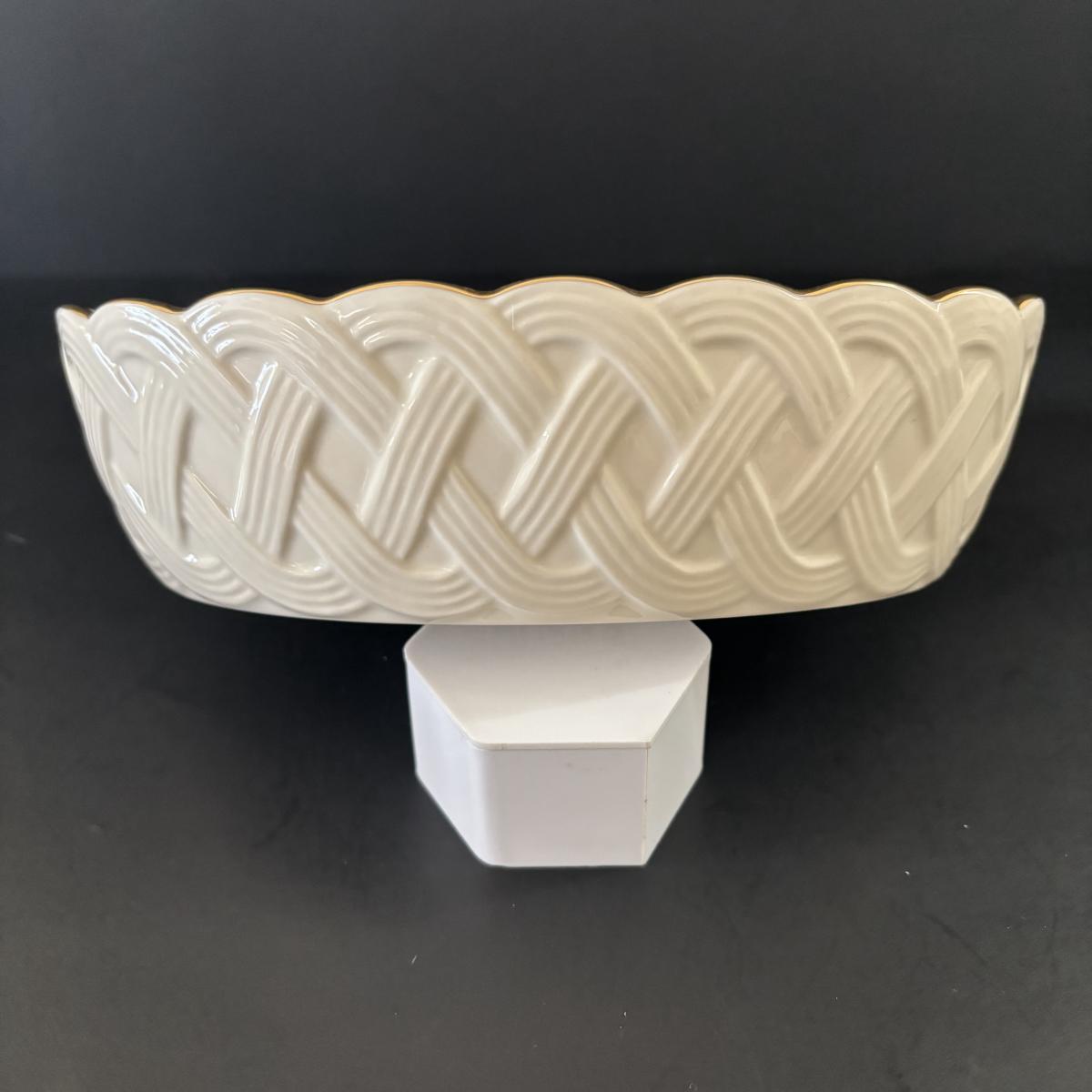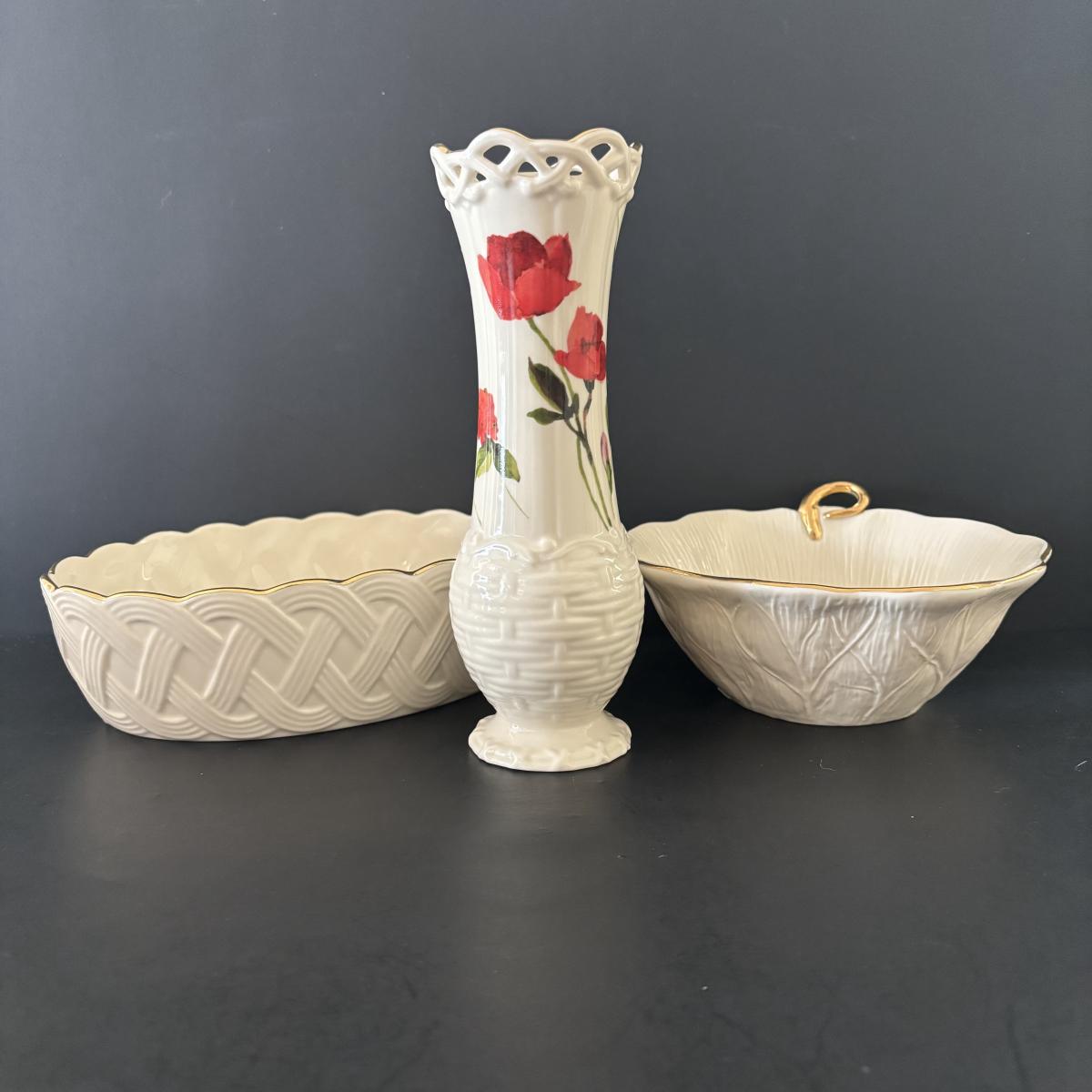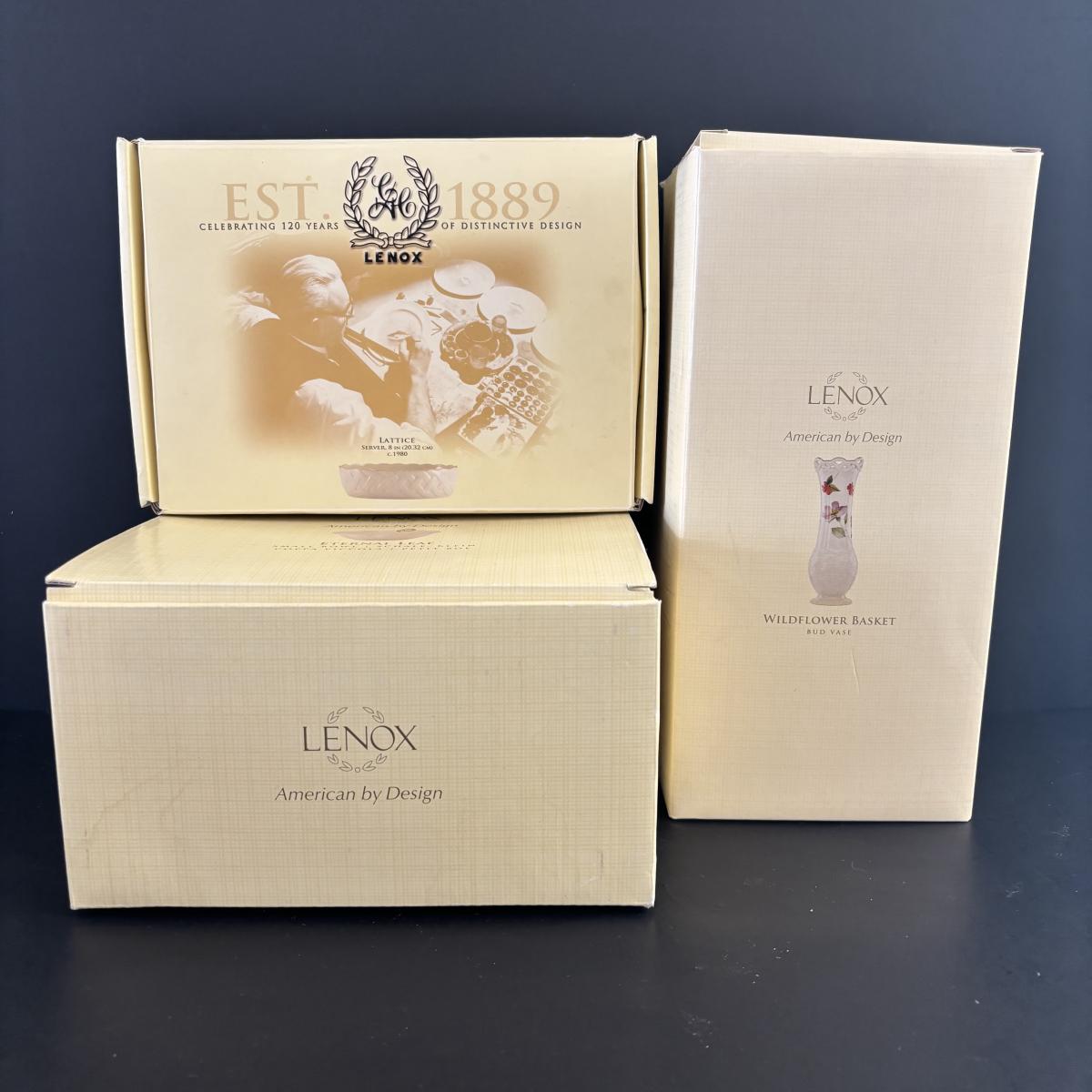 LOT 85: Lenox Collection: Lattice 8" Server Bowl, Wildflower Basket Bud Vase, Small Greenfield Bowl w/24k Trim