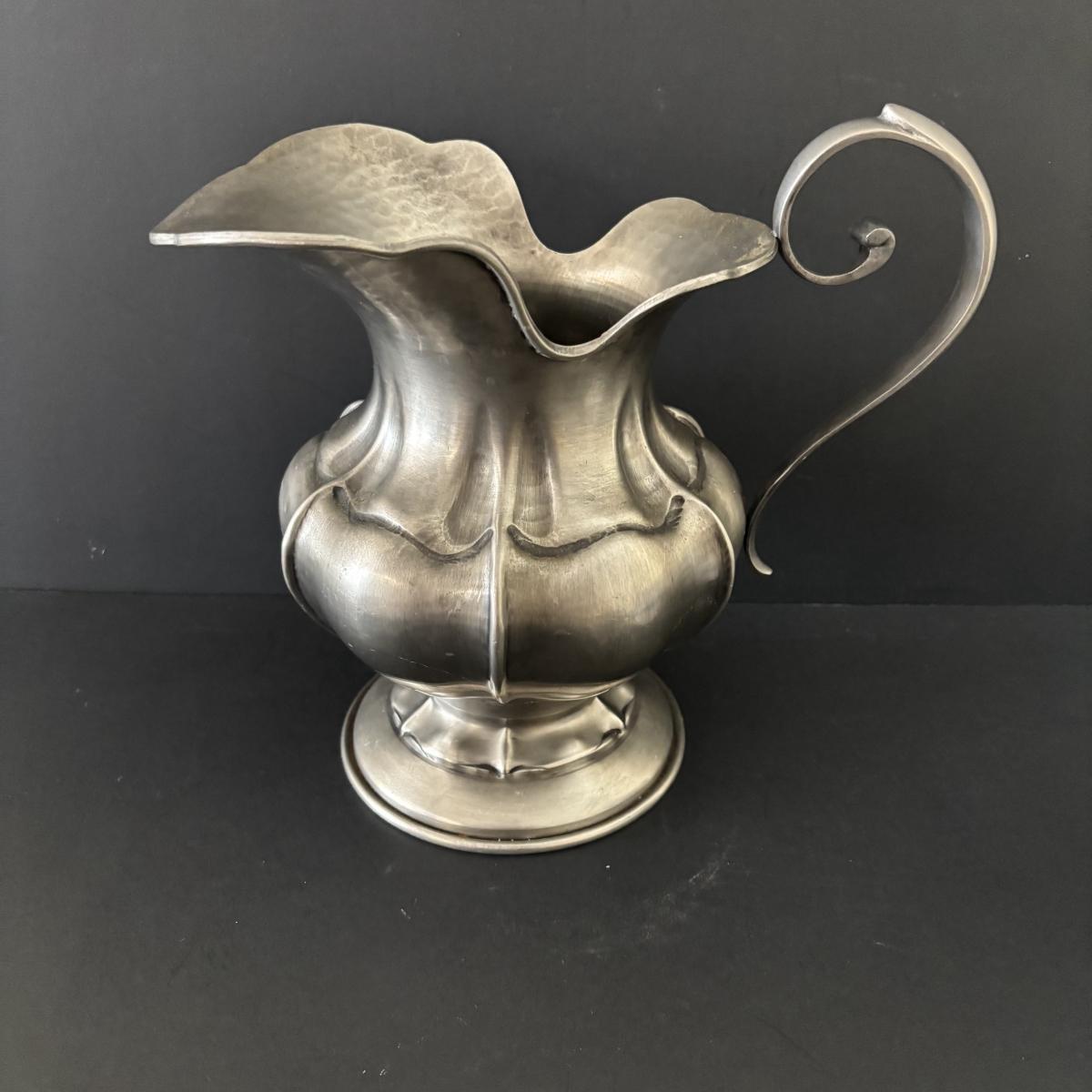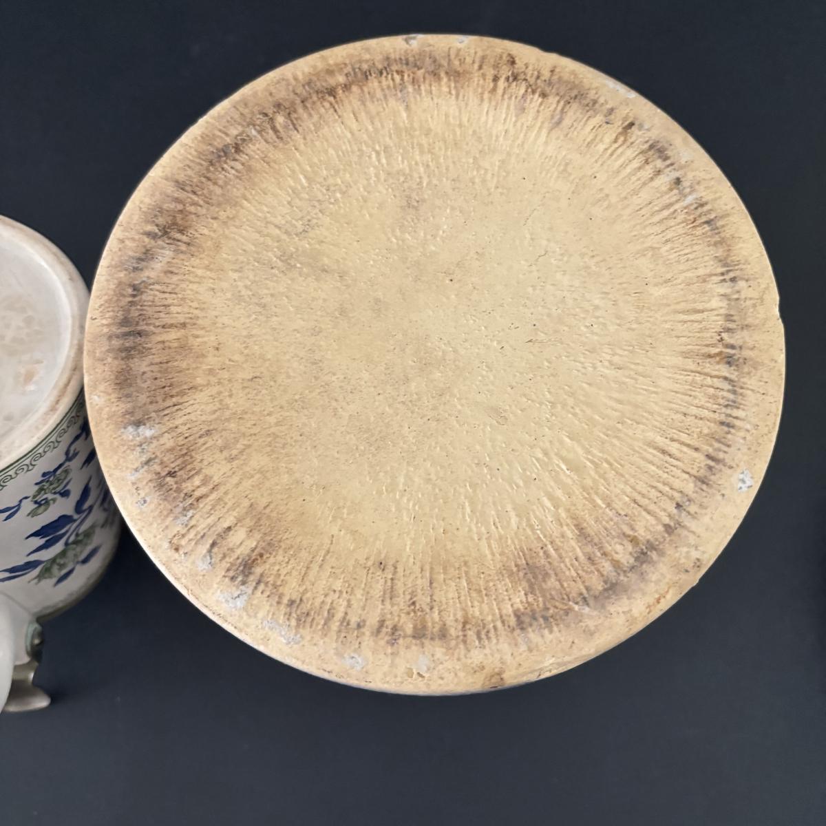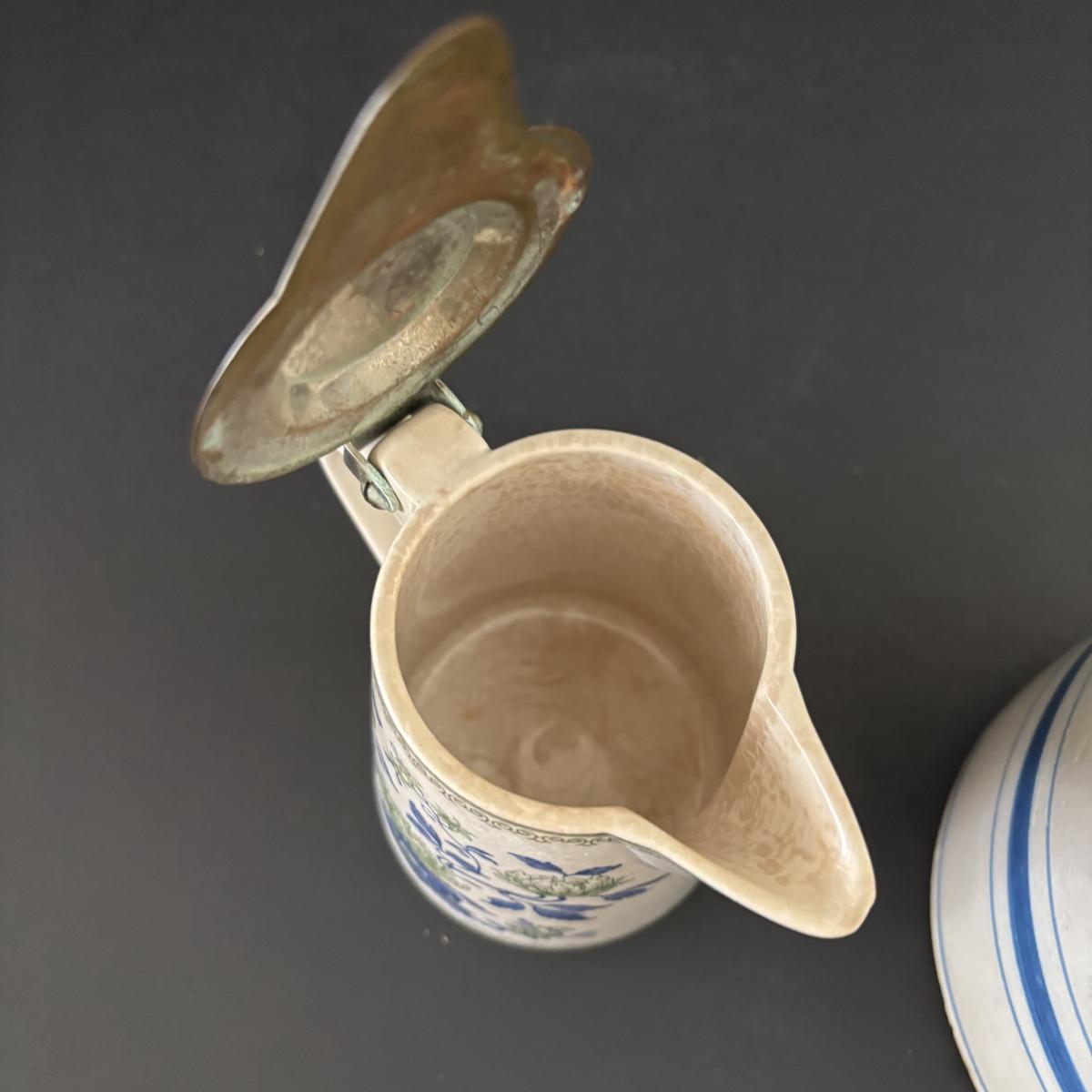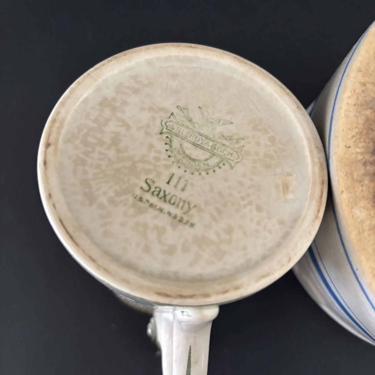 LOT 93: Vintage Villeroy Boch Dresden Saxony Pitcher, Primitive Glazed Pottery Crock w/Lid & Etain Zinn Pewter Pitcher
