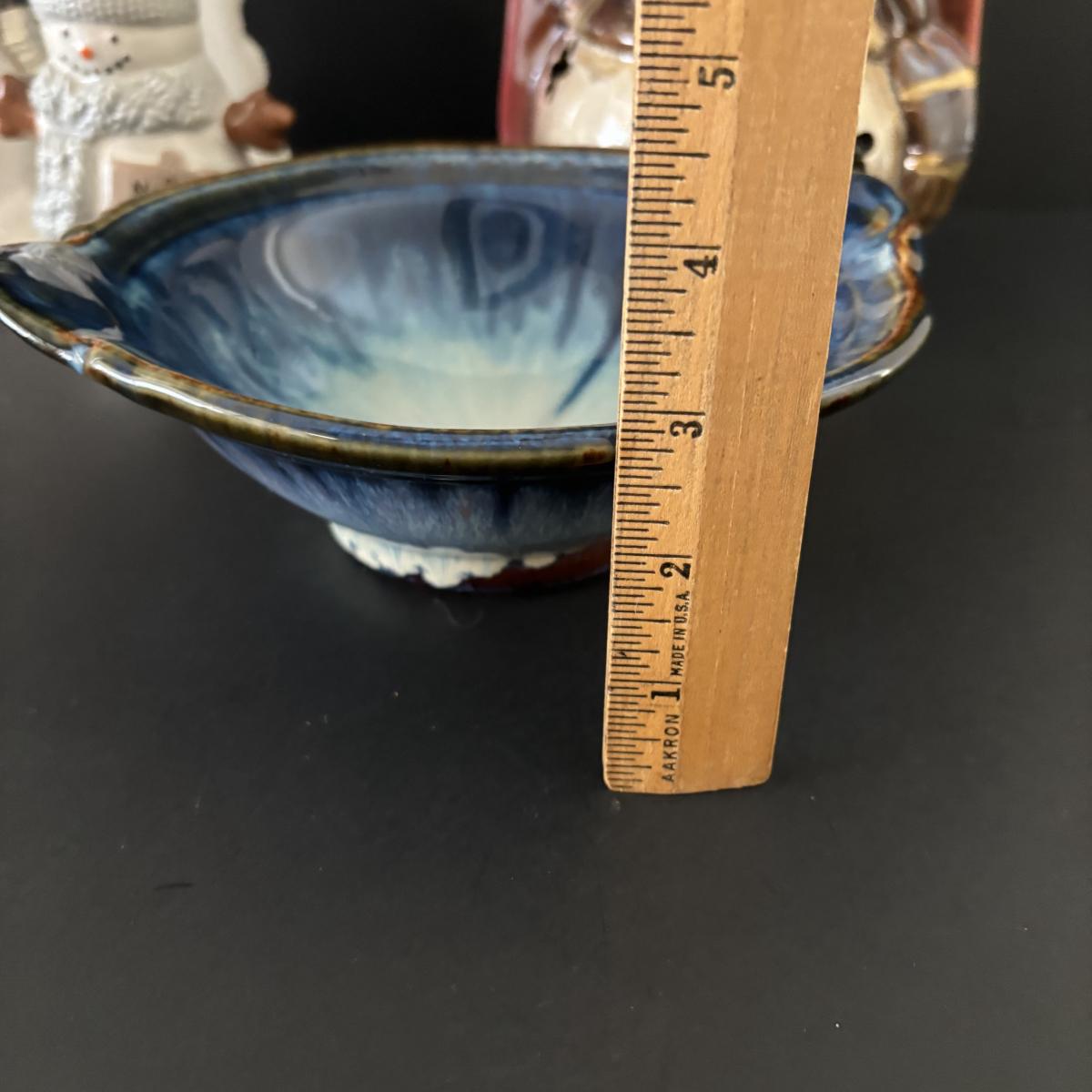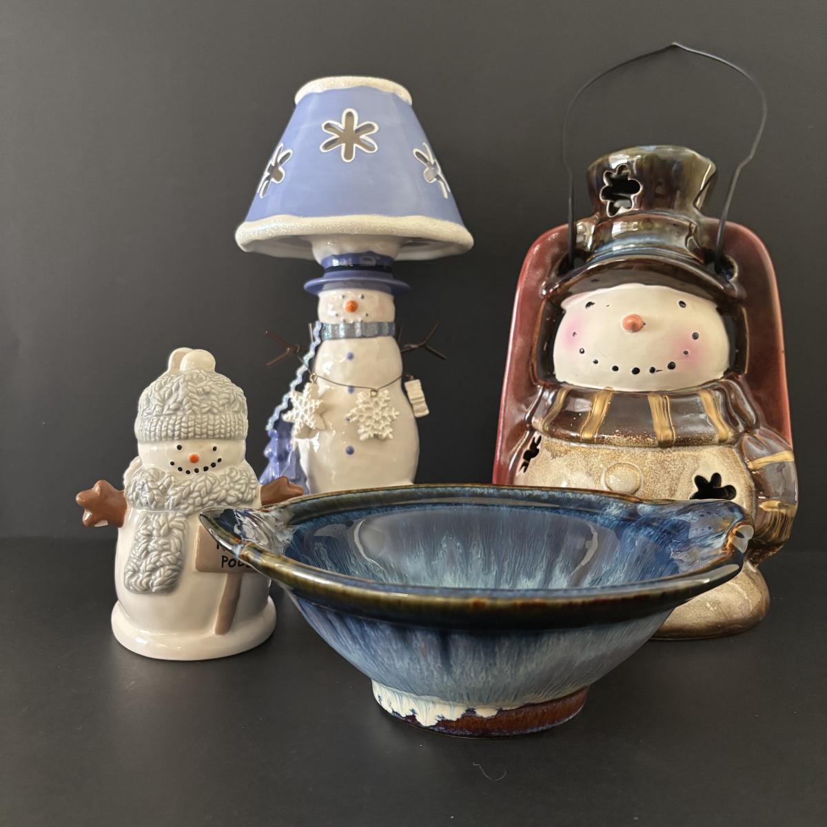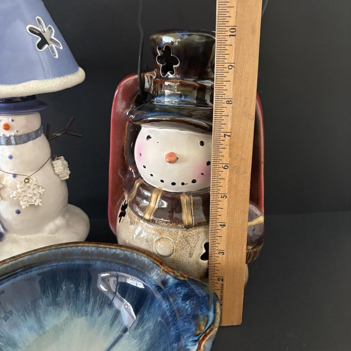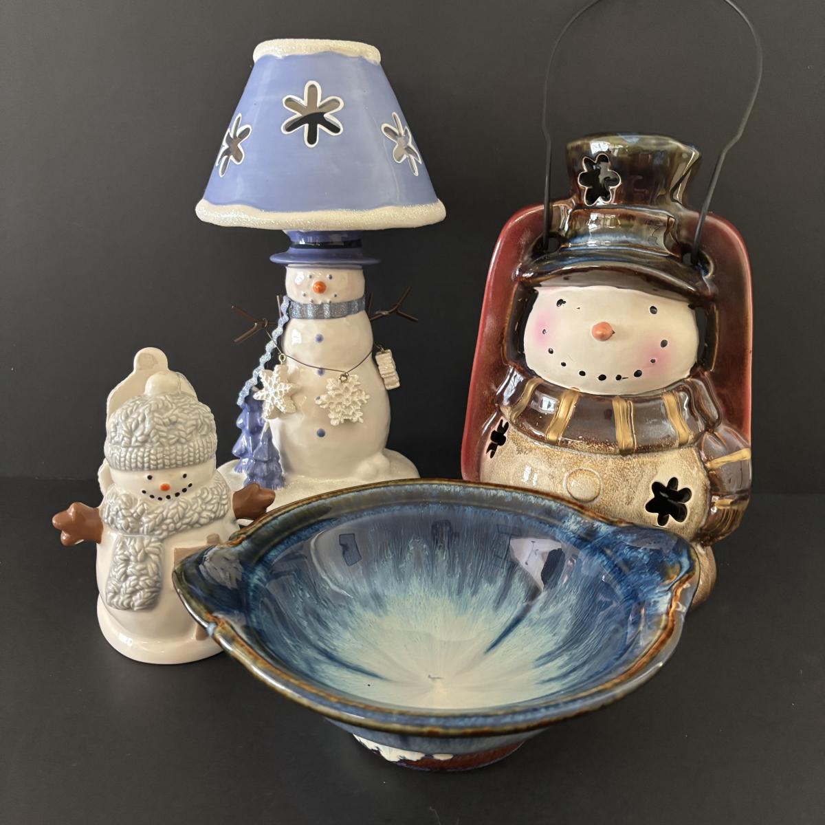 LOT 96: Signed Drip Glaze Pottery Bowl & Snowmen
