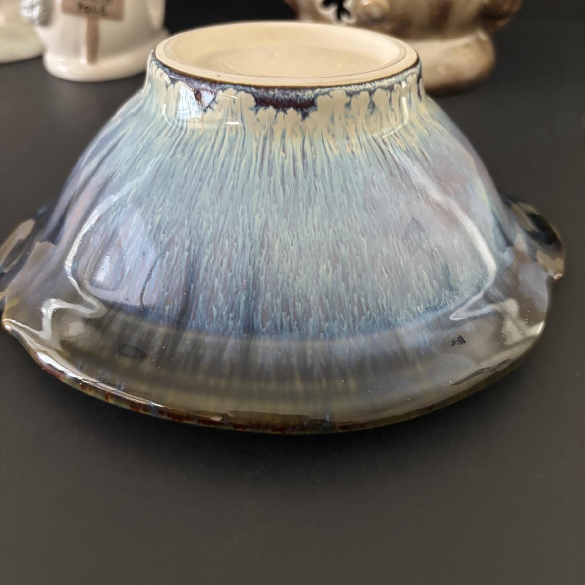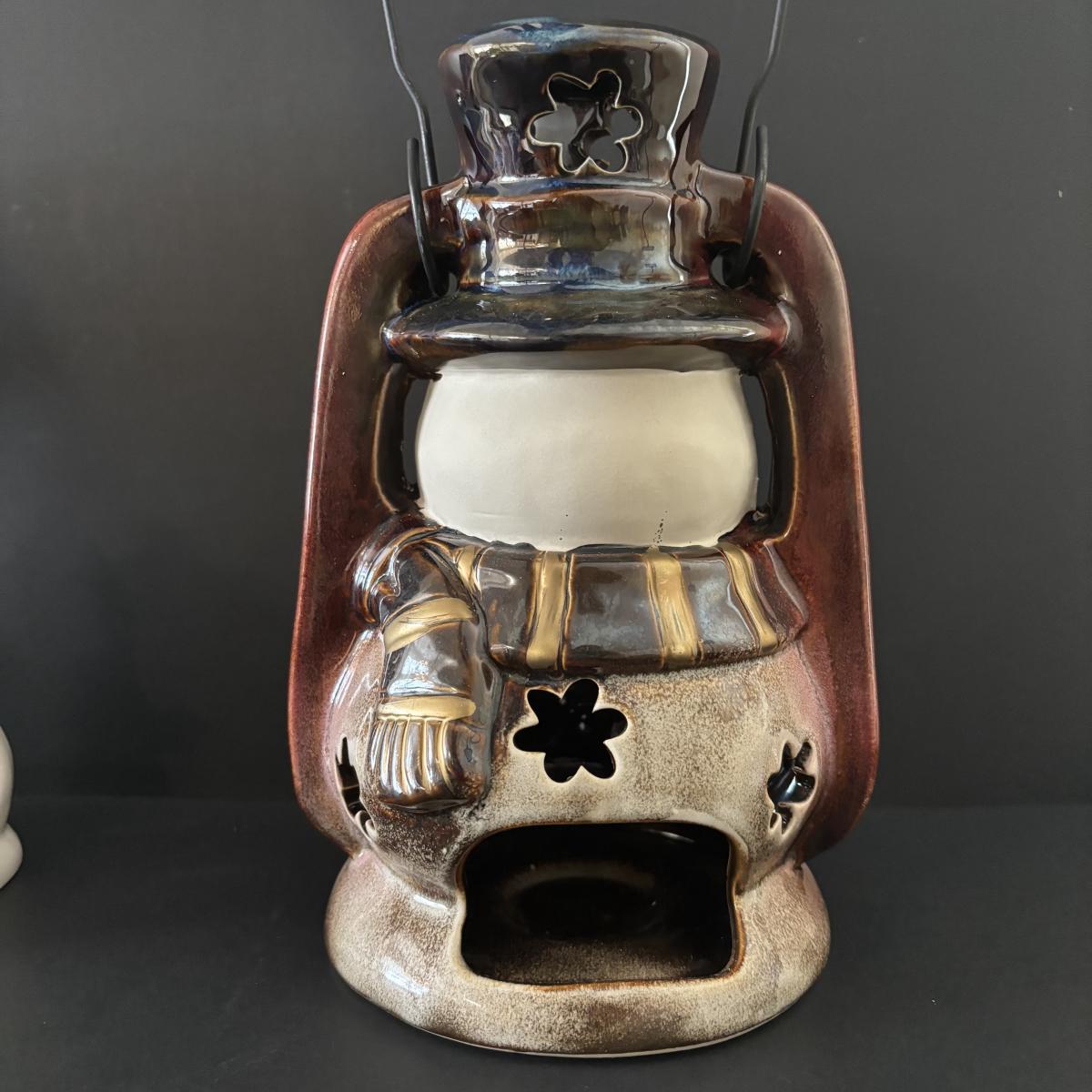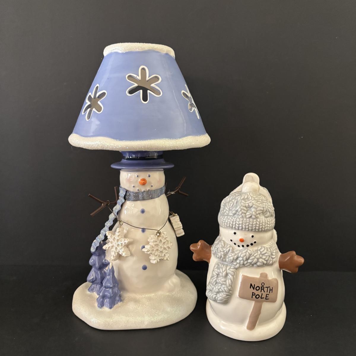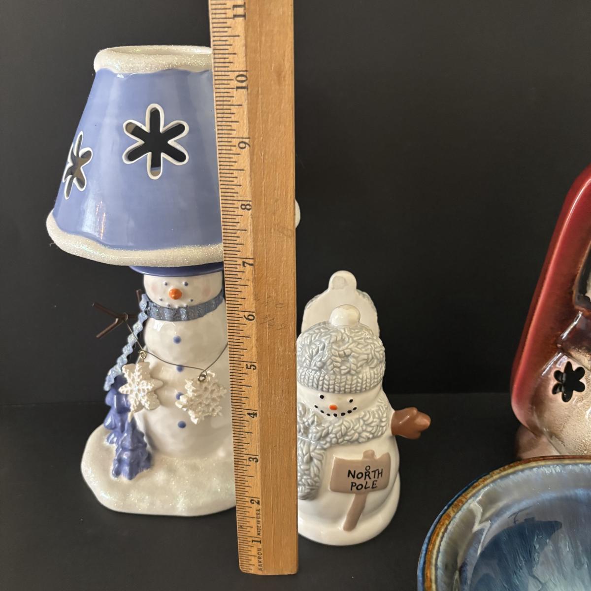 LOT 96: Signed Drip Glaze Pottery Bowl & Snowmen