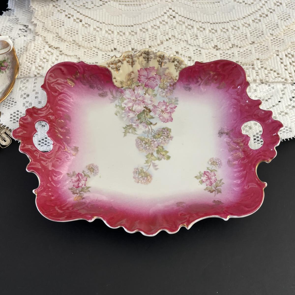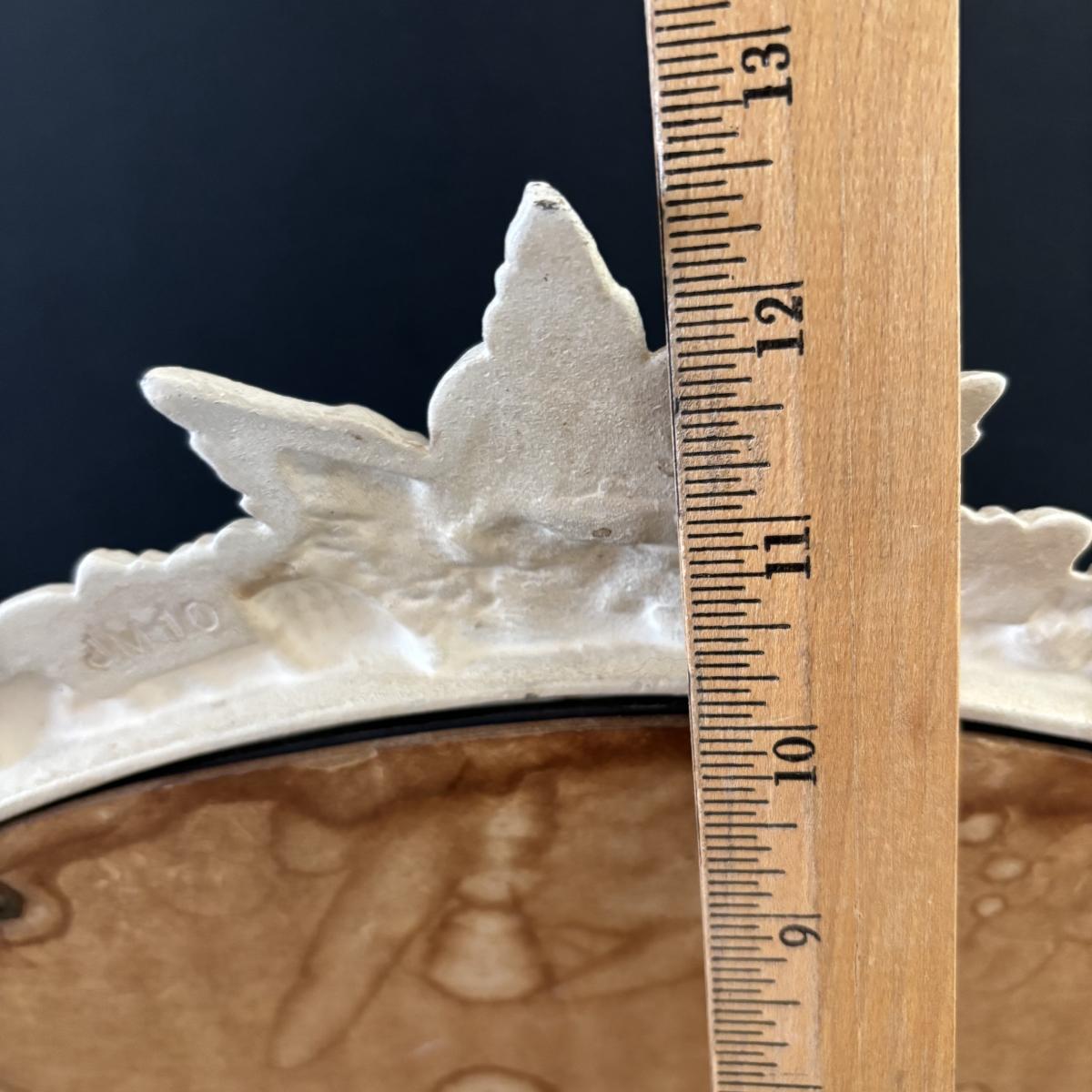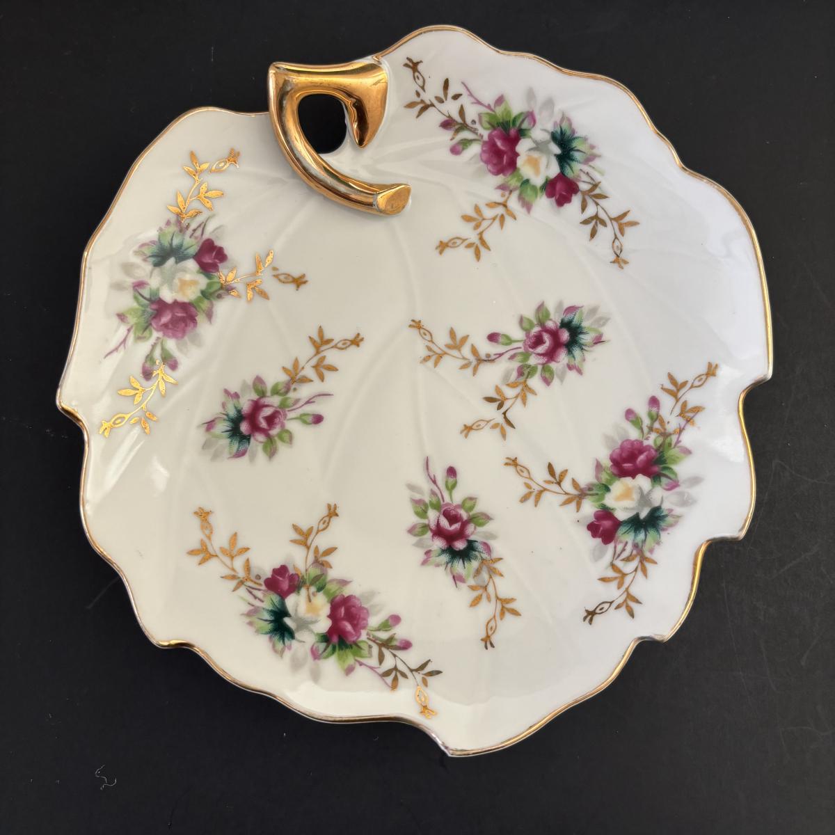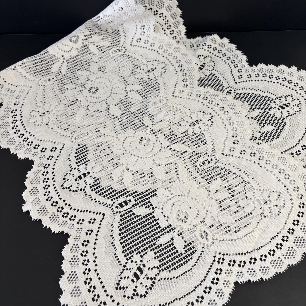 LOT 107: Shabby Chic Collection: Cast Iron Standing Vanity Mirror, Porcelain Trinket Dish, Brunswick Germany Dresser Tray, Royal Albert Teacup & Vintage Linens