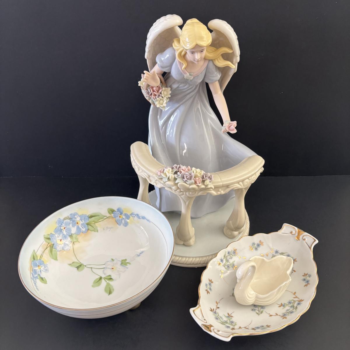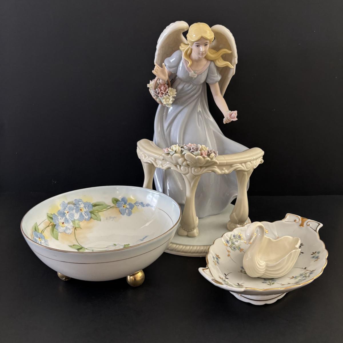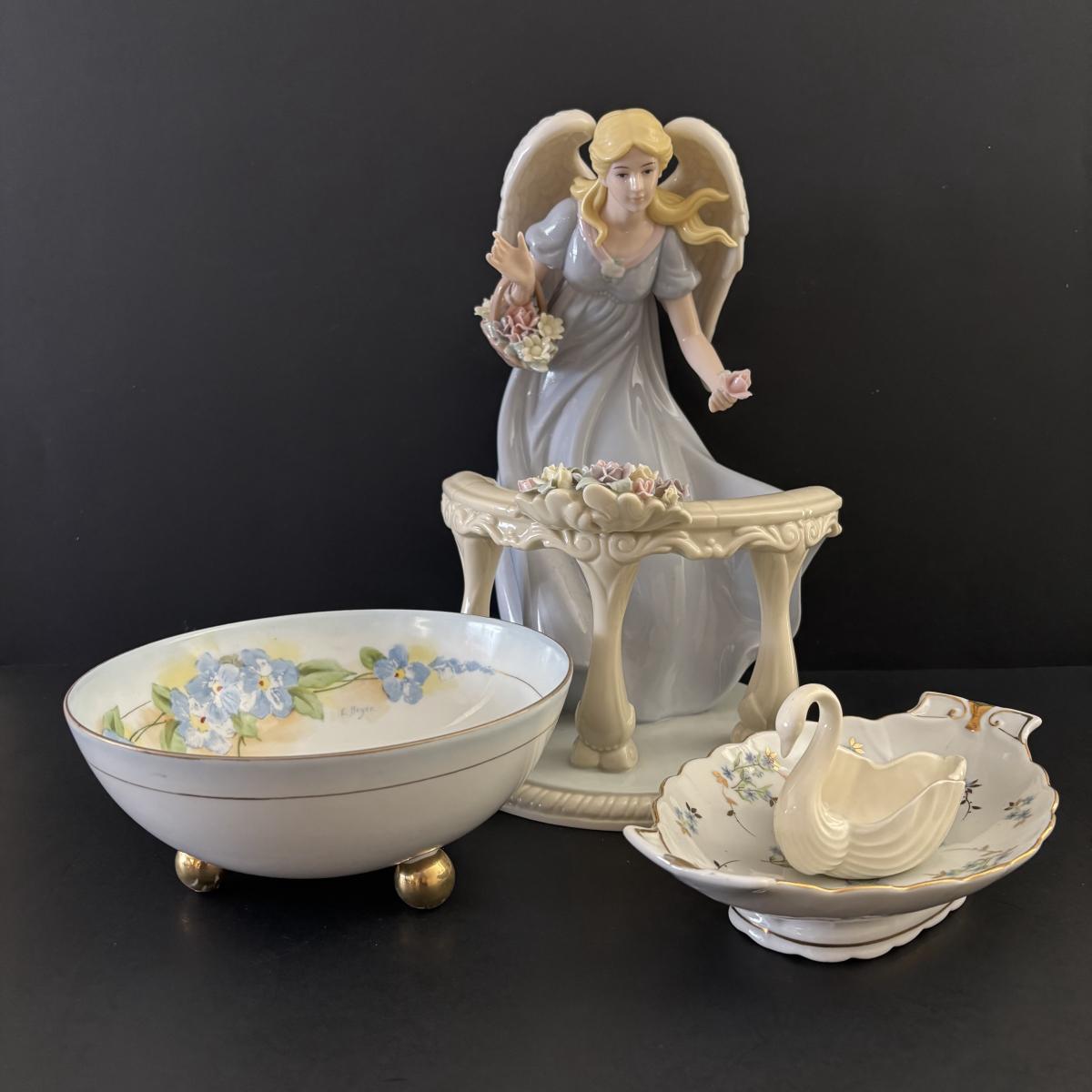 LOT 108: Member's Mard Porcelain Angle, Hand Painted Royal Rundstedt Prussia Footed Bowl & More