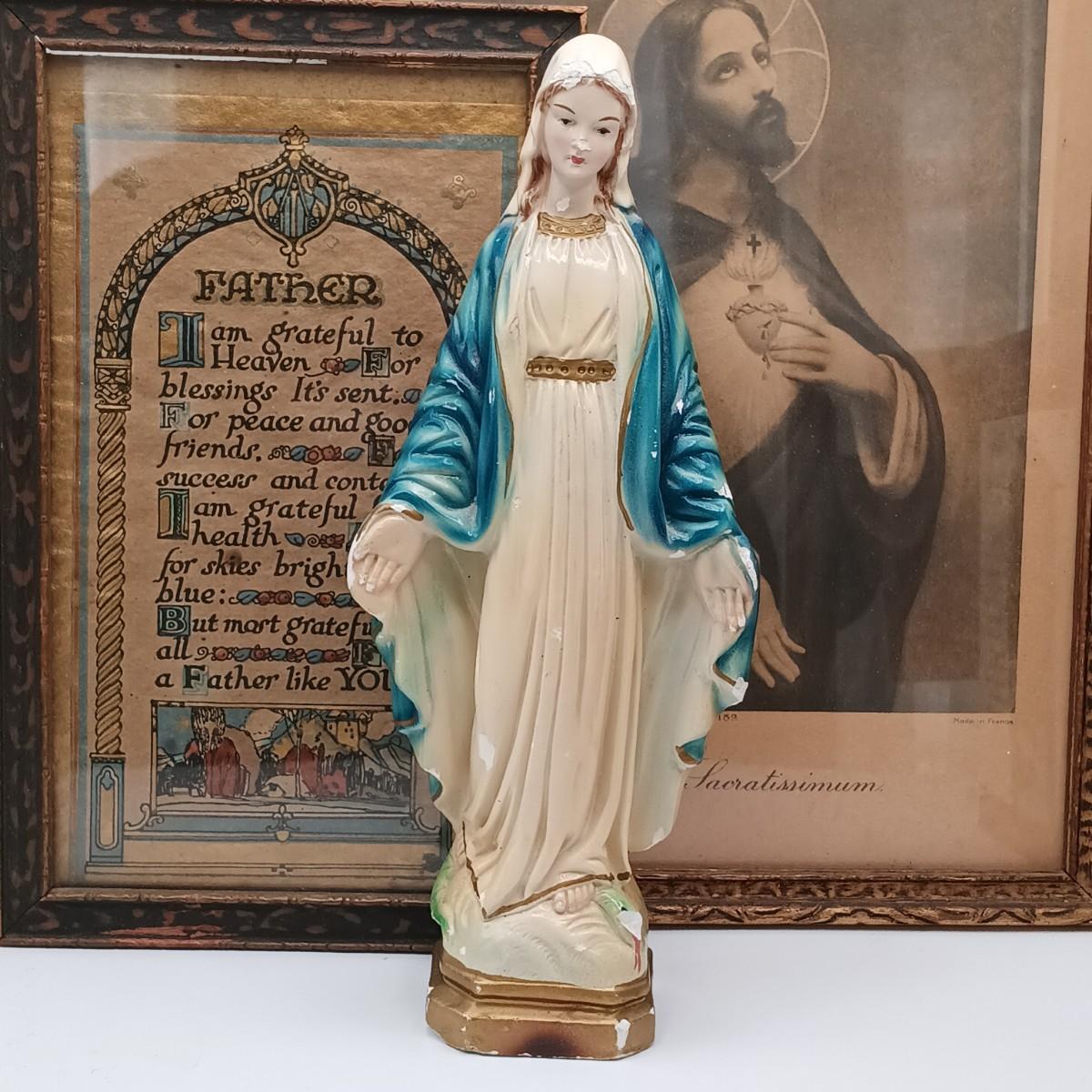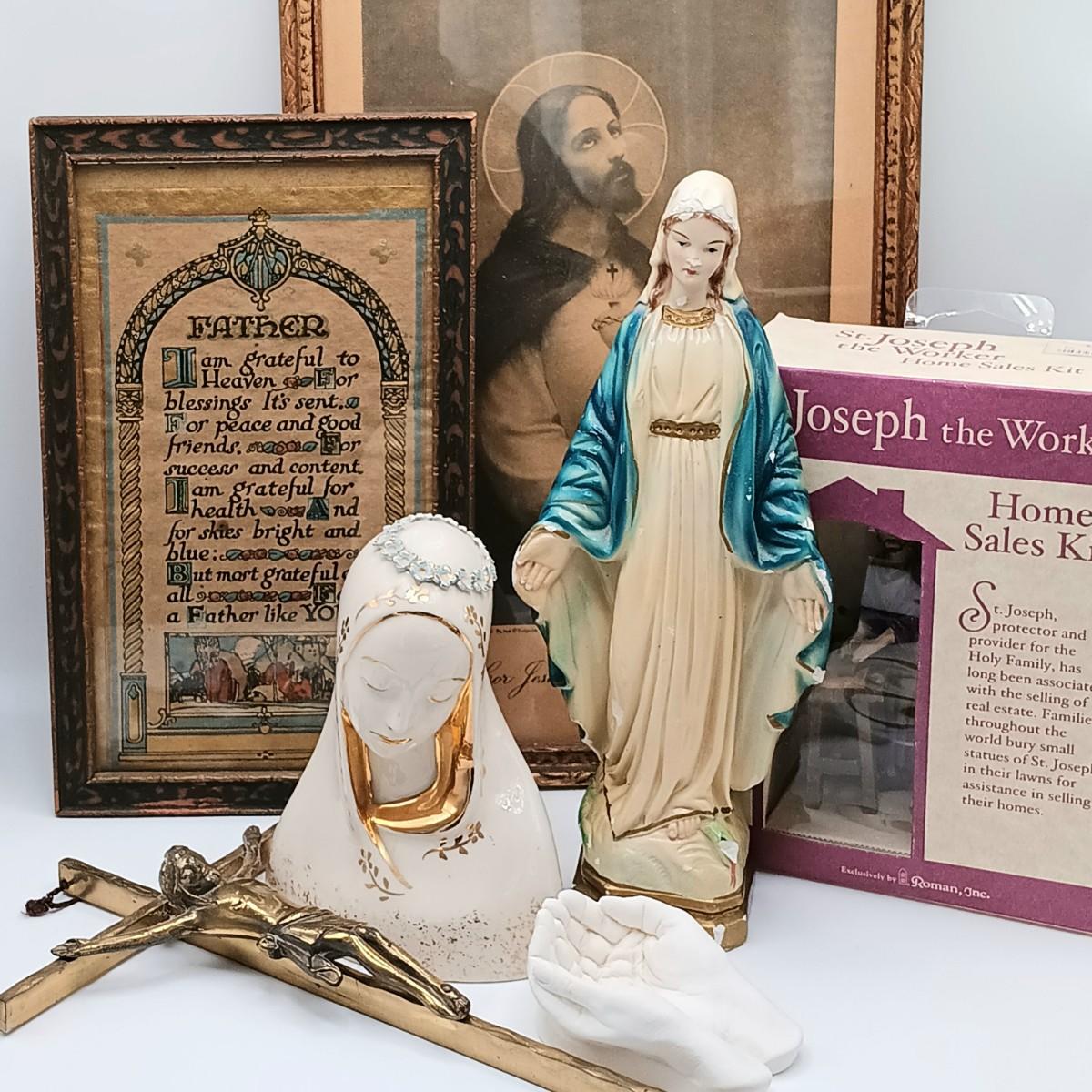 LOT 113: Vintage Madonna Bust, Circa 1920s Father Motto, Chalkware Madonna Statue & More