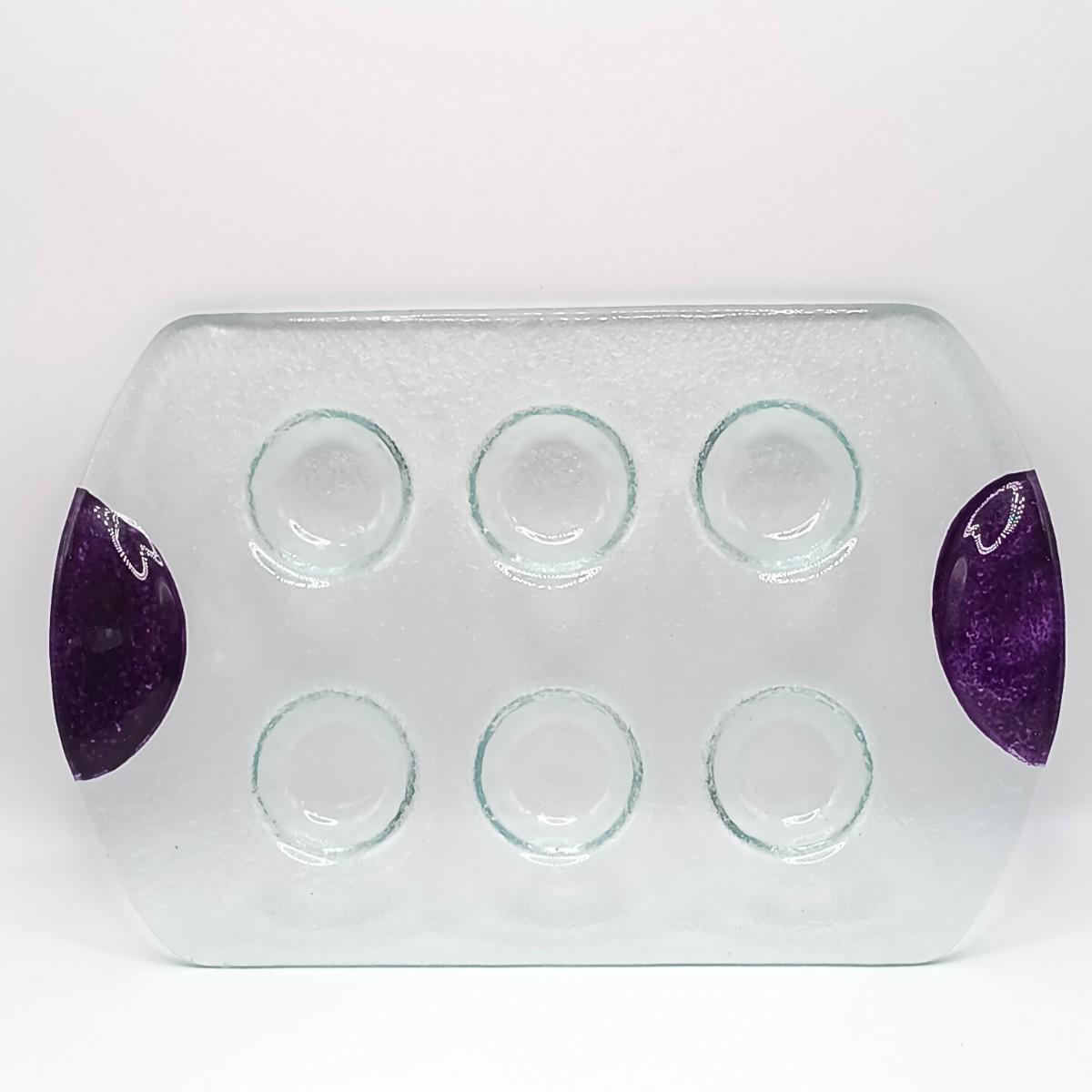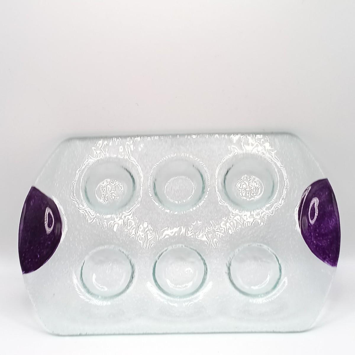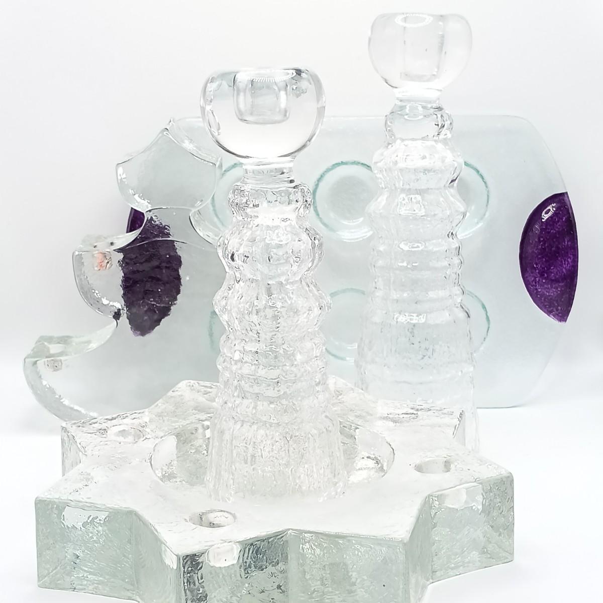 LOT 120: Danse Spectra Glass Tray, Hollow Glass Candle Holders & German Christmas Candle Holders