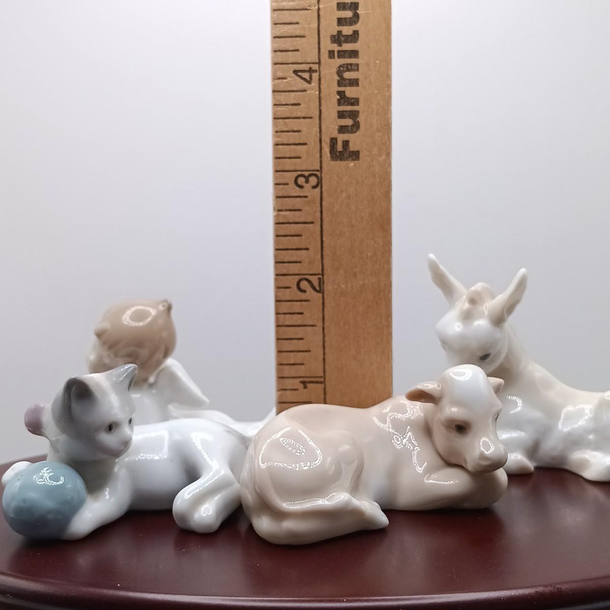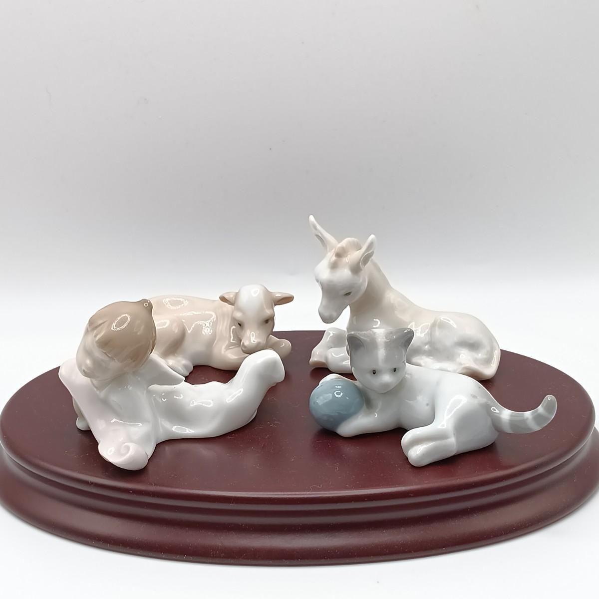 LOT 123: Lladro Angel, Donkey and Cow Figurine Set with Metzler & Ortloff Cat