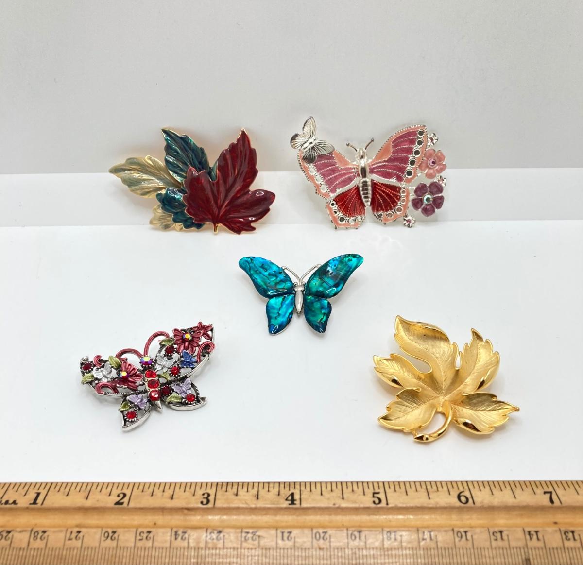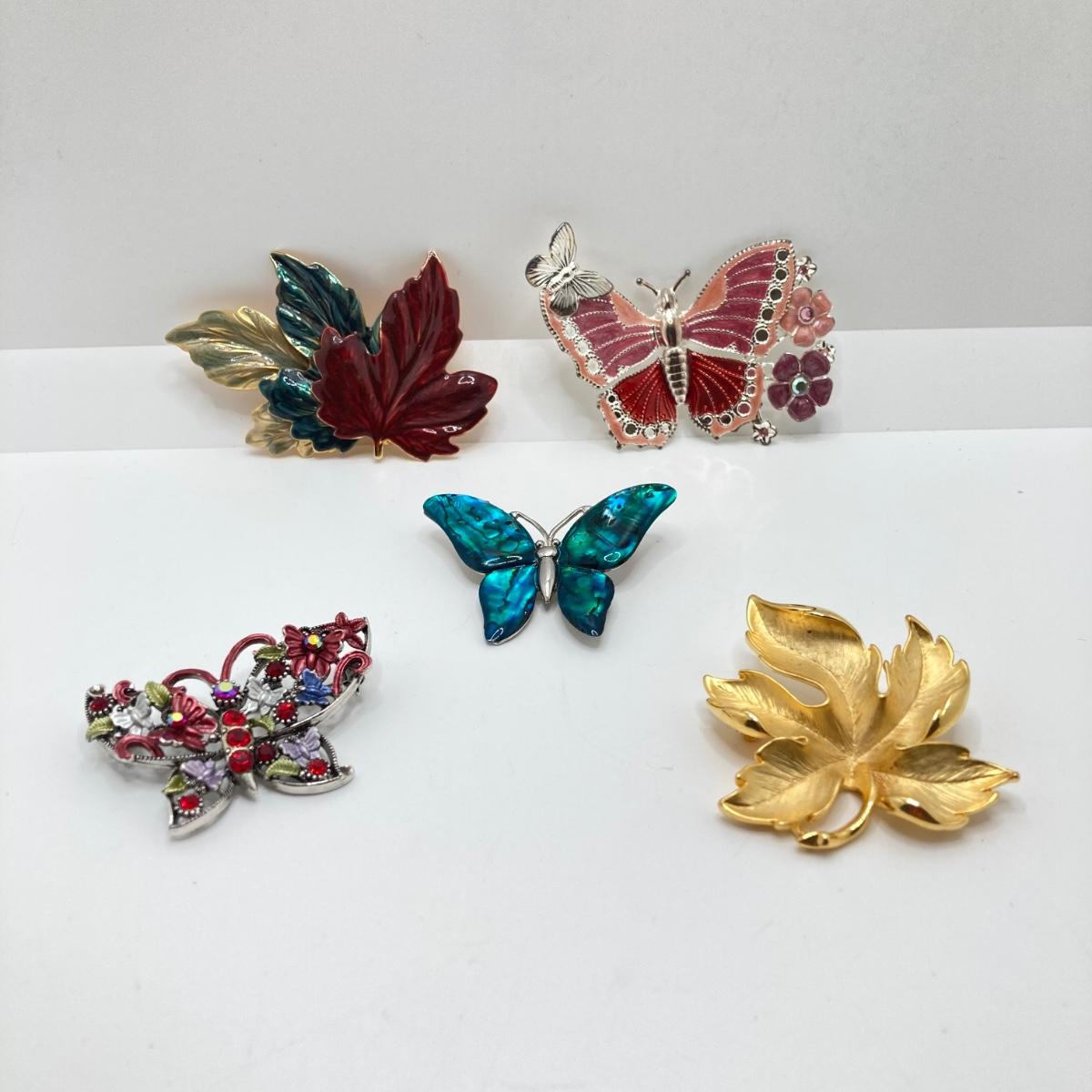 LOT 136: Collection of Butterfly and Leaf Style Brooches / Pins
