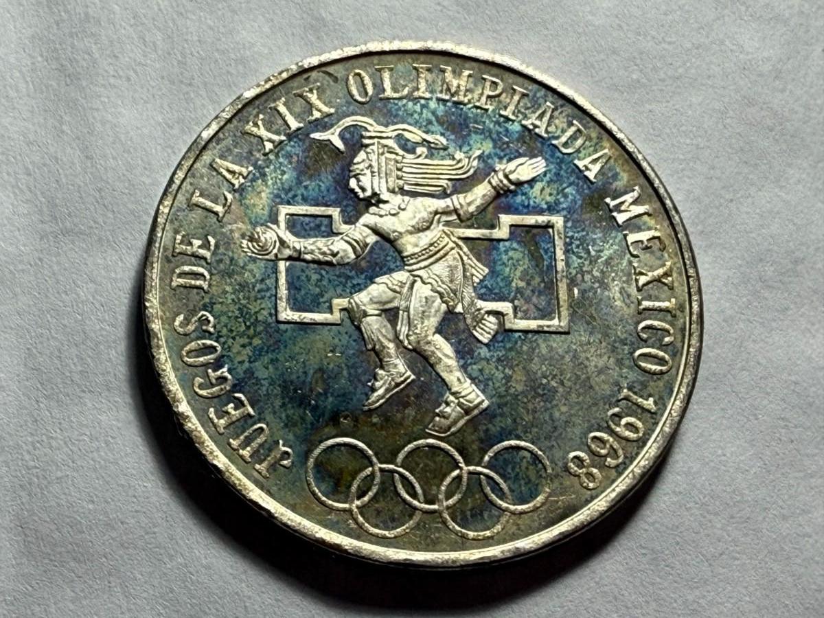 Mexico 1968 Choice Uncirculated Lightly Toned 25 Peso Olympic Silver Coin Contains .5209 Troy oz of actual silver content. (Receive Coin Pictured). $5 DOMESTIC SHIPPING.