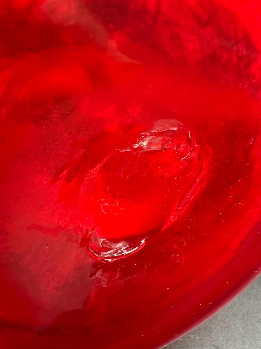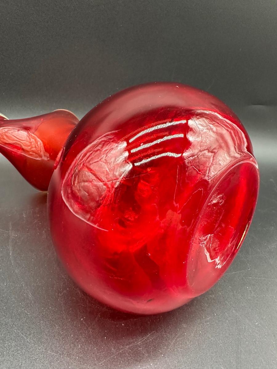 This piece has wonderful movement and elegant lines, typical of Venetian studio glass from the 1950s–1970s era. The red glass glows beautifully in light and displays exceptionally well.