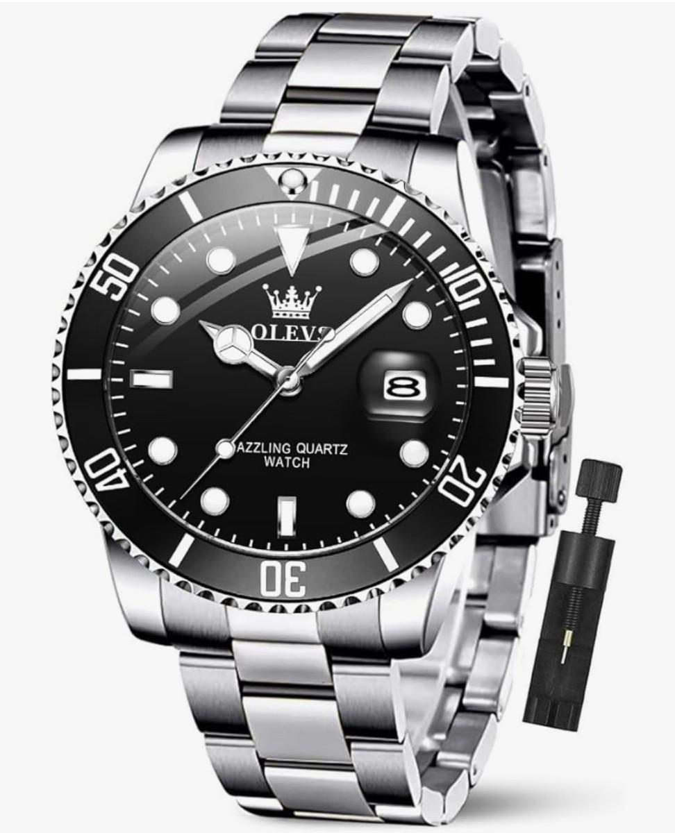 OLEVS Luxury Watches for Men Big Face Stainless Steel Business Dress Analog Quartz Watch with Day Waterproof