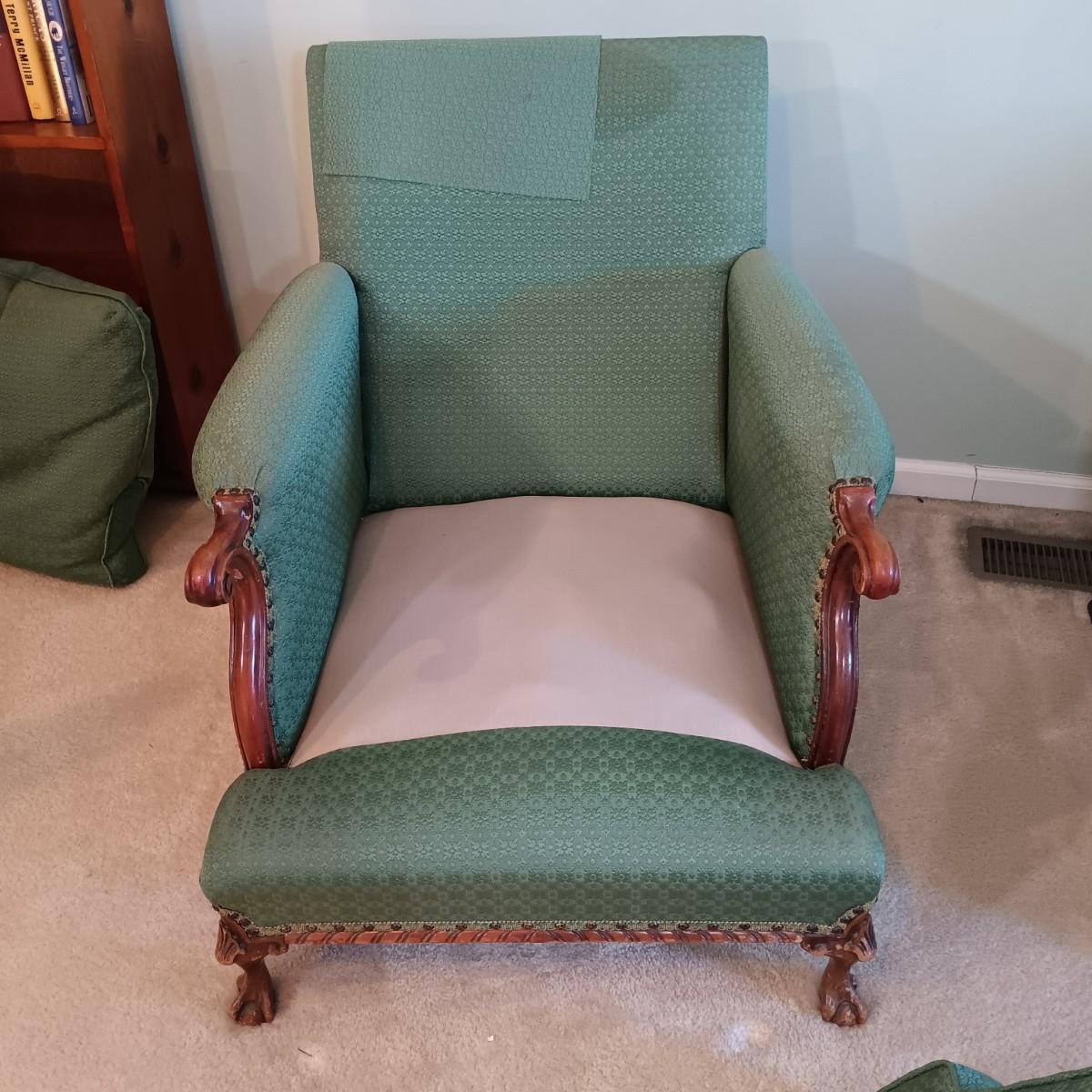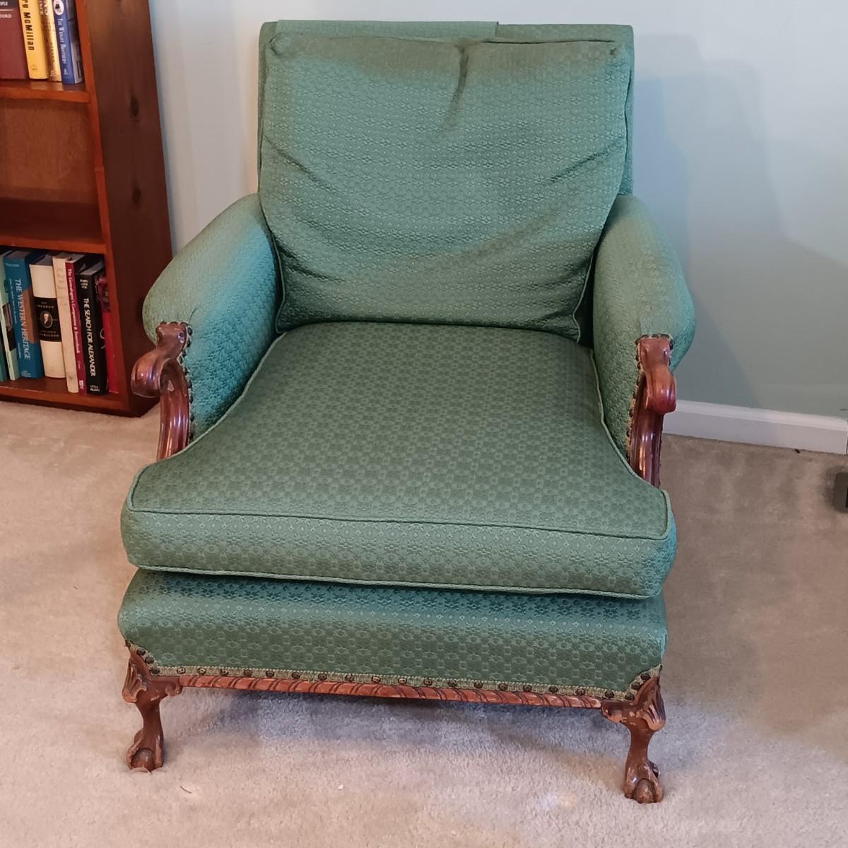 LOT 1: Chippendale-Style Club Chair with Matching Foot Stool