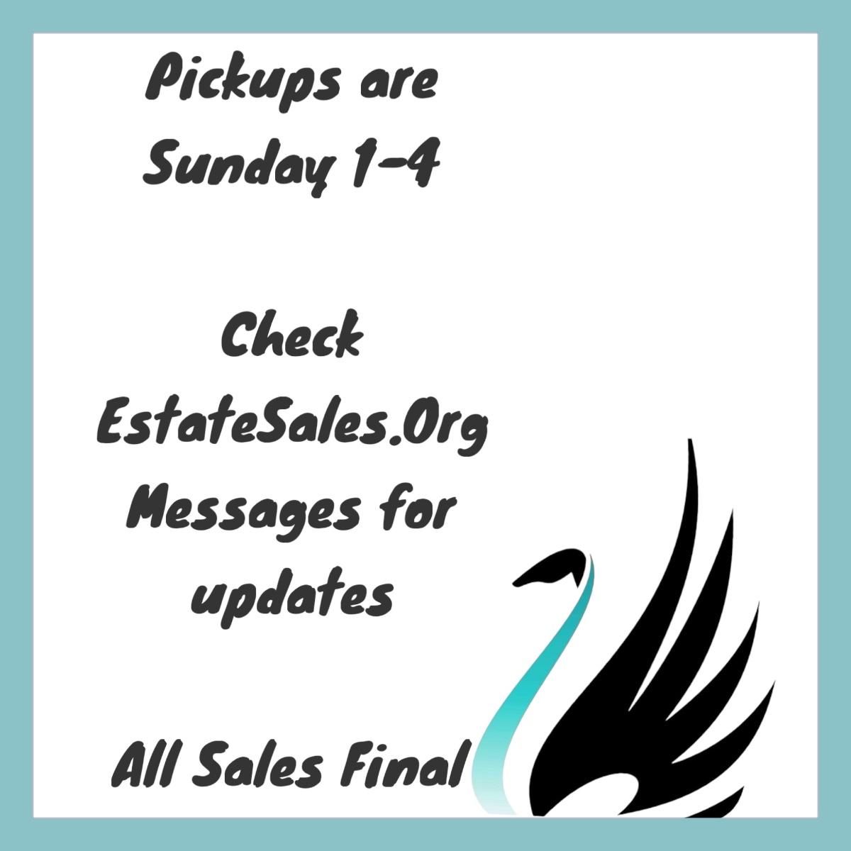 Please review any instructions the seller has provided in their sale terms and conditions. Swan Estate Sales should contact you within the next few days to finalize your transaction.