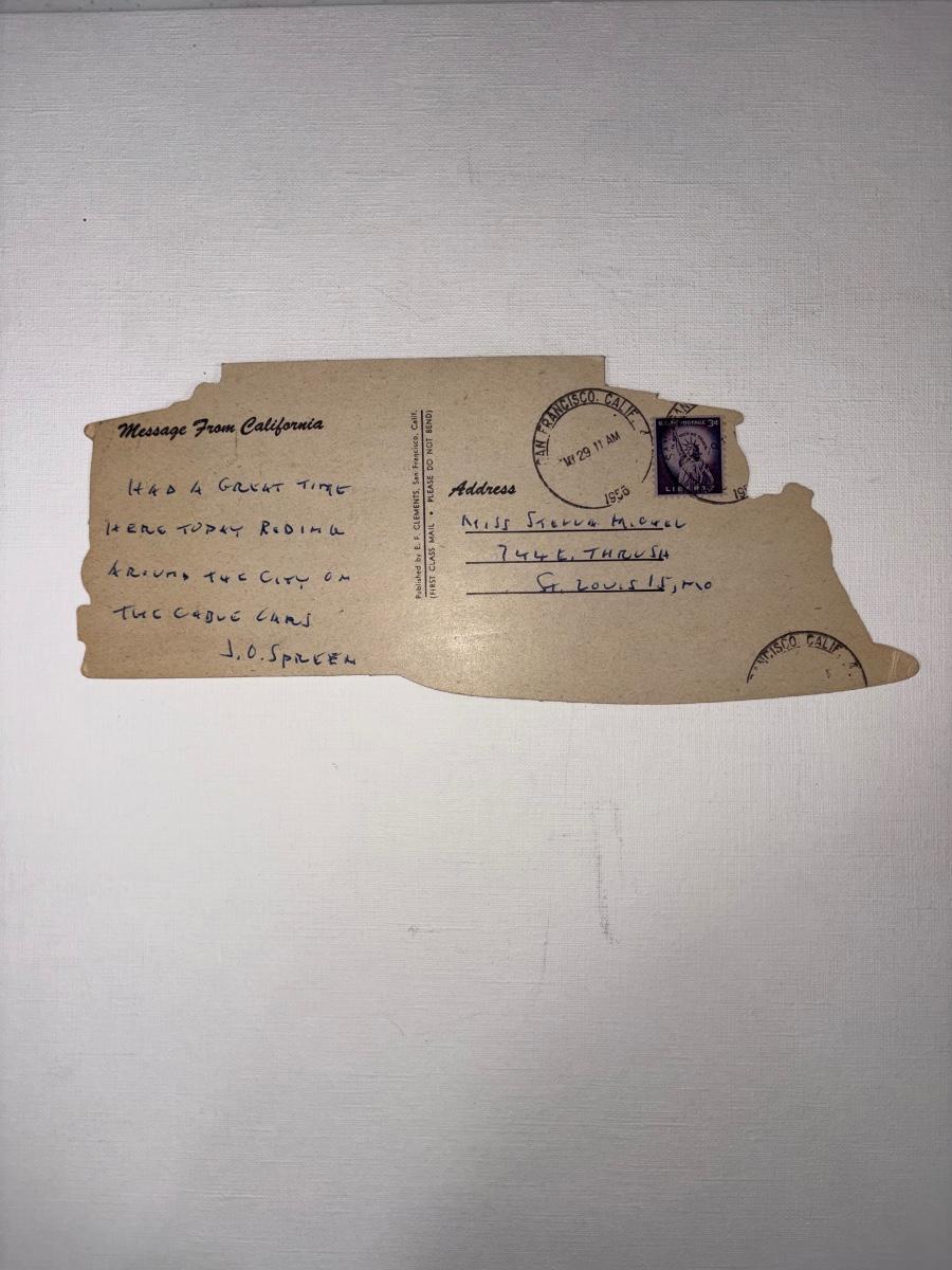 Railroad - 1956 Diecut Cardboard Postcard, San Francisco Cable Car