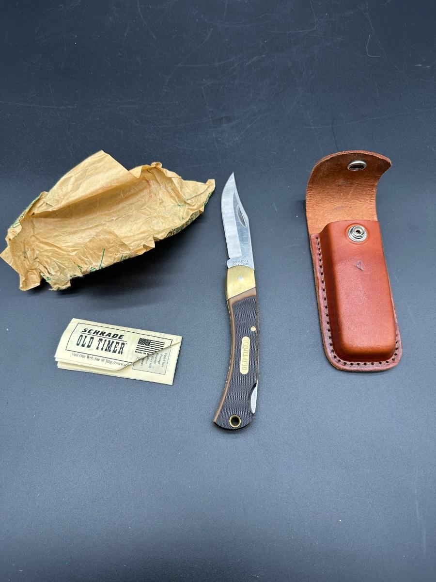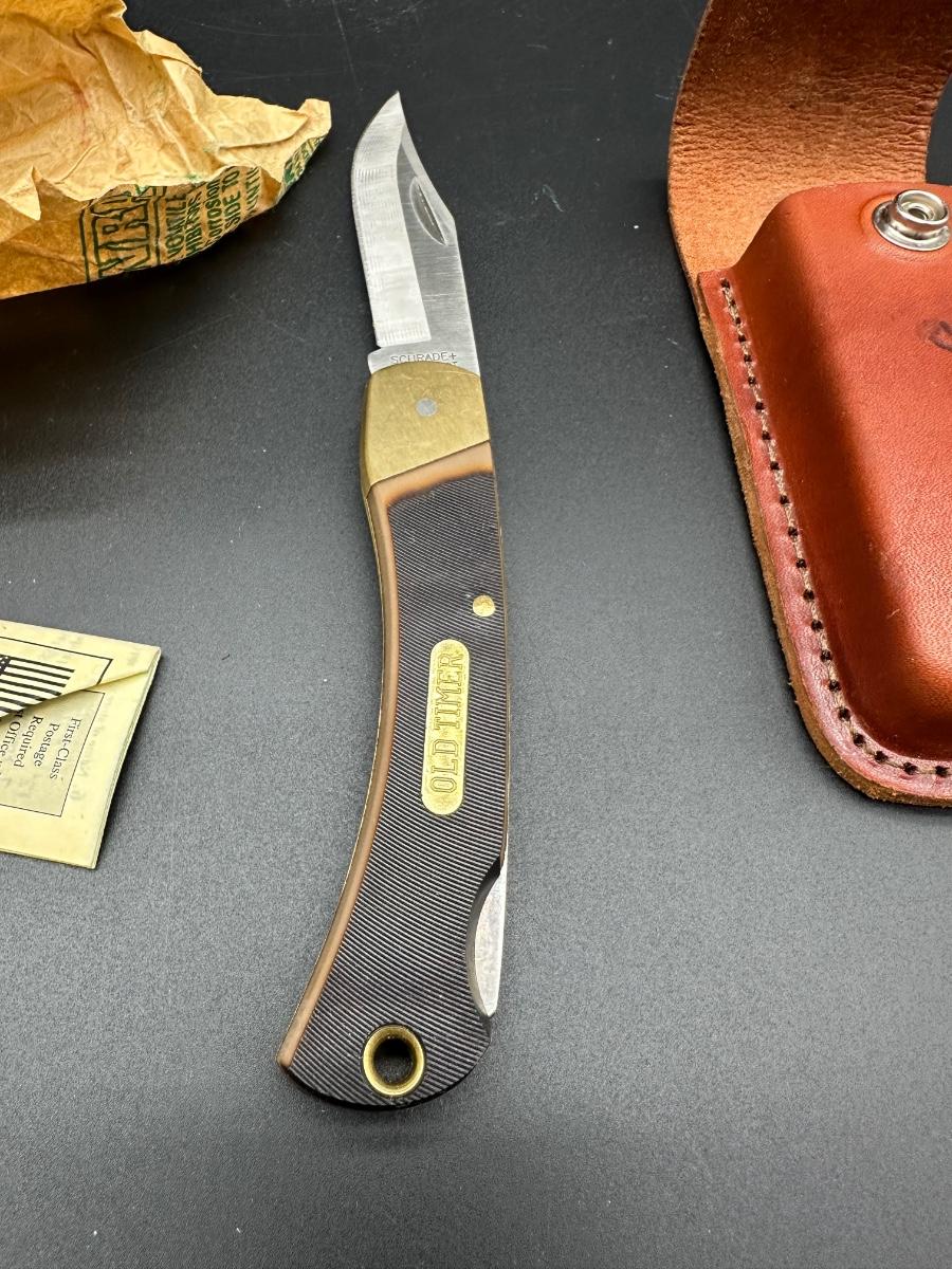 Schrade Old Timer 6OT “Golden Bear” Lockback Folding Knife w/ Original Leather Sheath & Papers USA