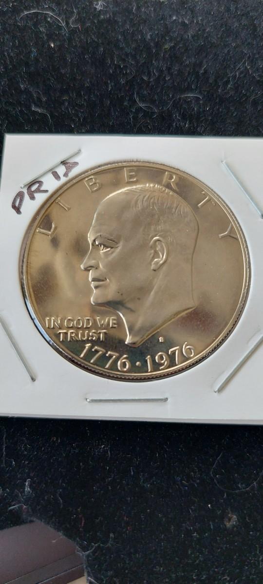 The Eisenhower dollar coin in the image is a Bicentennial issue, minted in 1975 and 1976 to celebrate the 200th anniversary of American independence