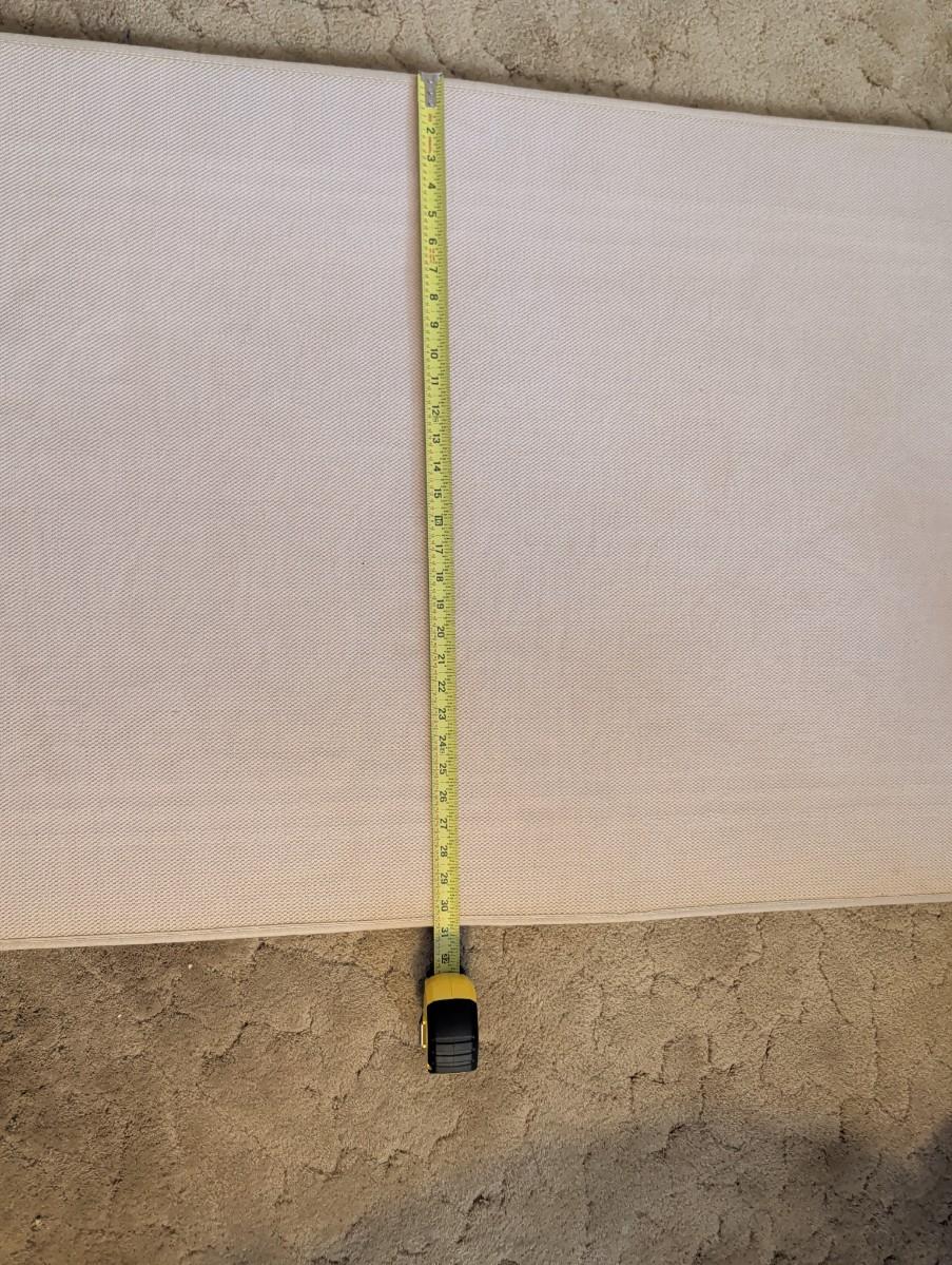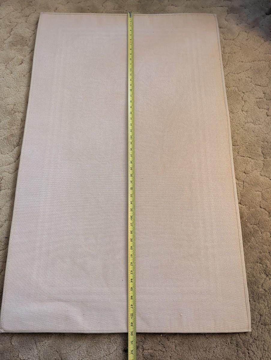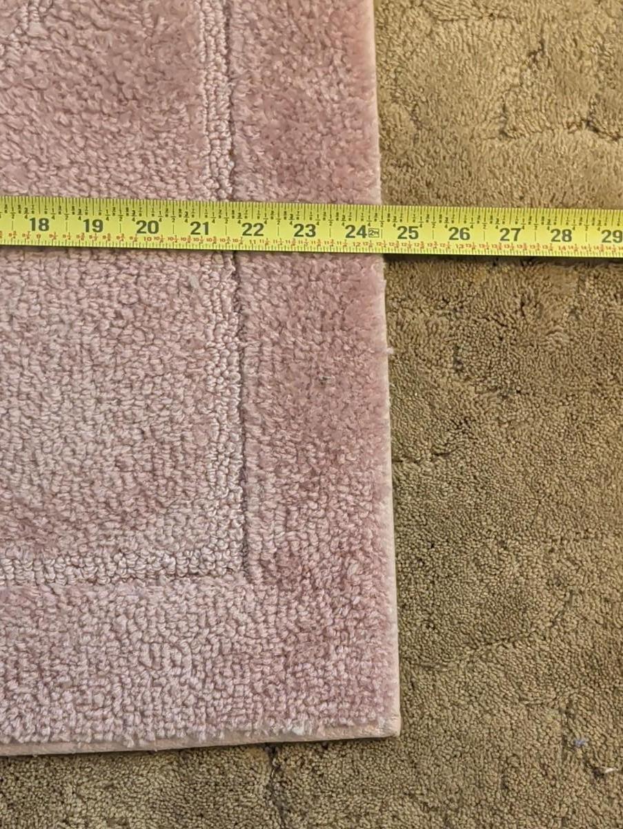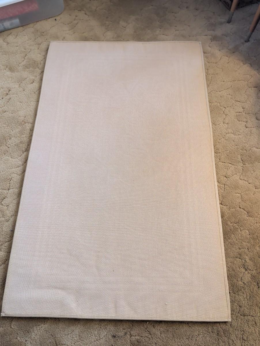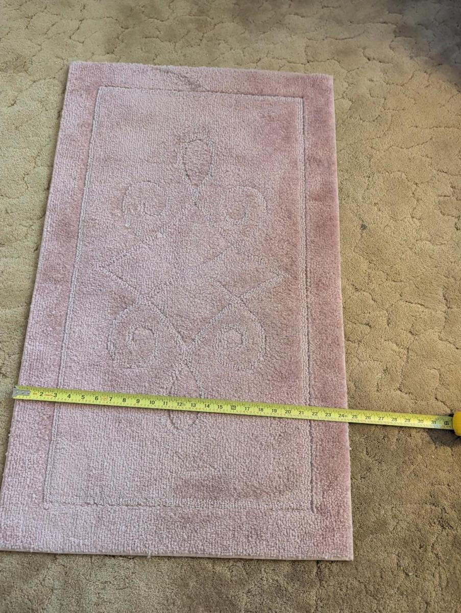 Two rugs with rubber backing, one pink, and one tan in color. In great condition.