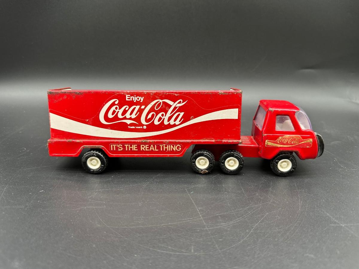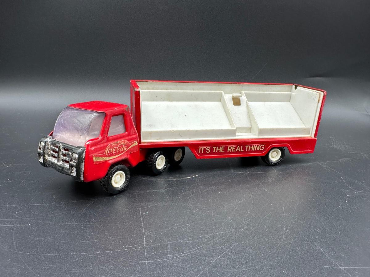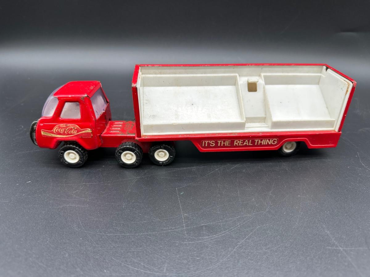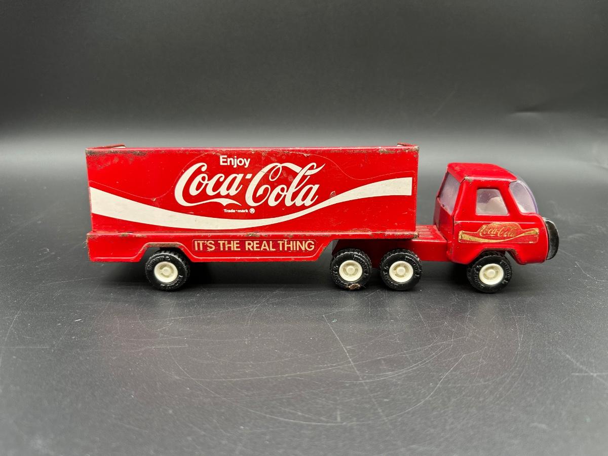 Buddy L Coca-Cola semi truck and trailer, featuring the classic red “Enjoy Coca-Cola” graphics and “It’s The Real Thing” slogan along the trailer sides.