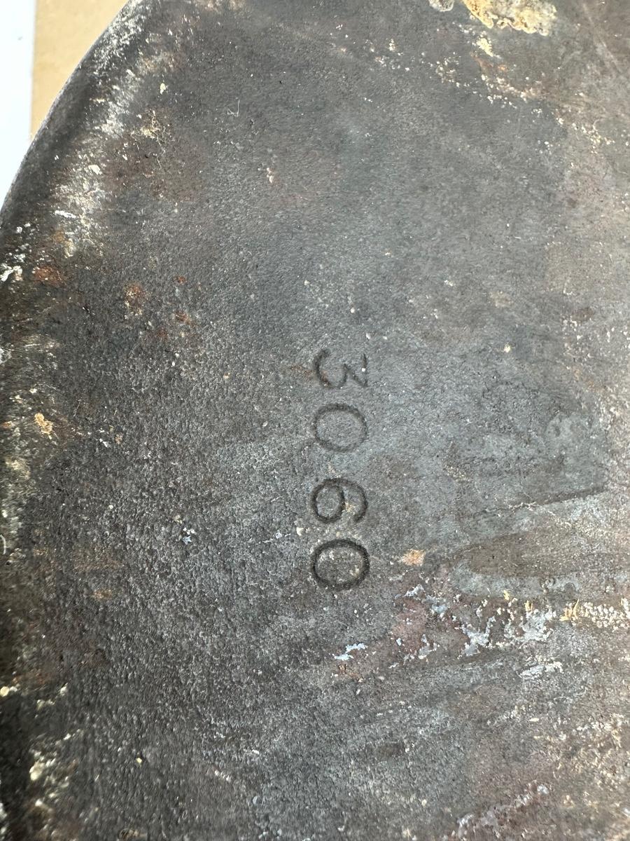 Heavy vintage cast iron oval roaster with matching lid. Features double carry handles and deep sides—great for roasting, baking, or camp cooking. Solid, thick casting with good weight and heat retention. Unbranded, marked “3060” on the base.