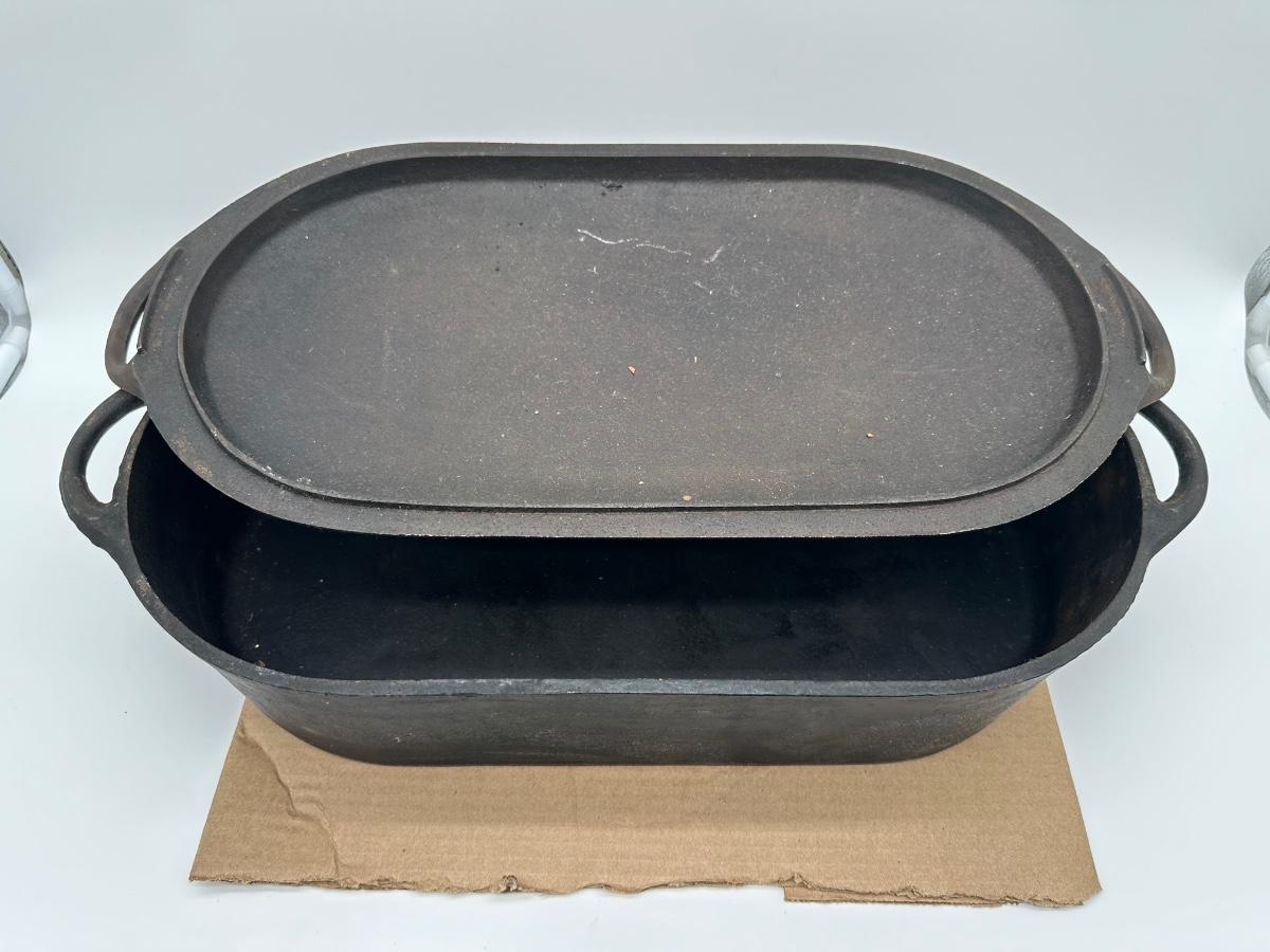 Vintage Cast Iron Oval Roaster / Dutch Oven w/ Lid – Double Handles – Marked 3060