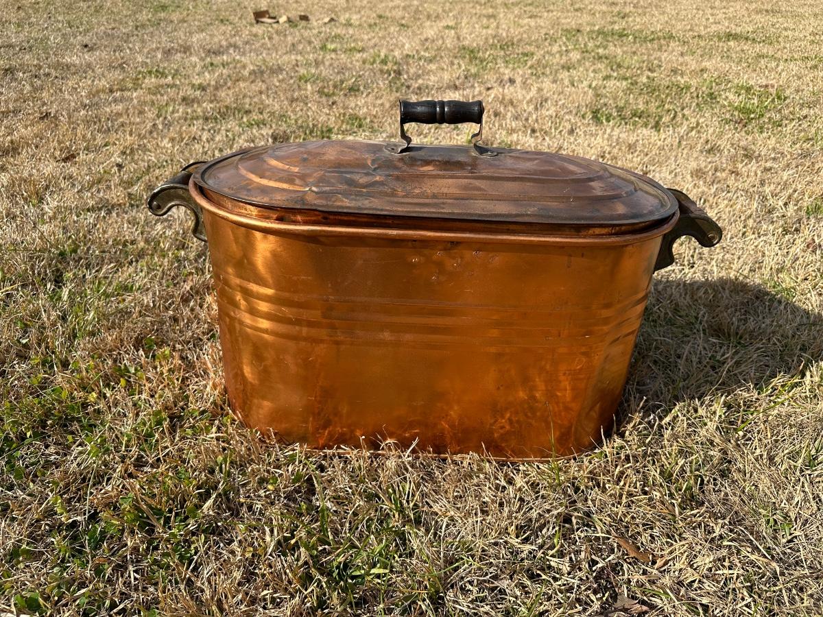 Vintage Frisco Copper Wash Boiler w/ Lid – Large Farmhouse Laundry Tub – Rustic Primitive Decor