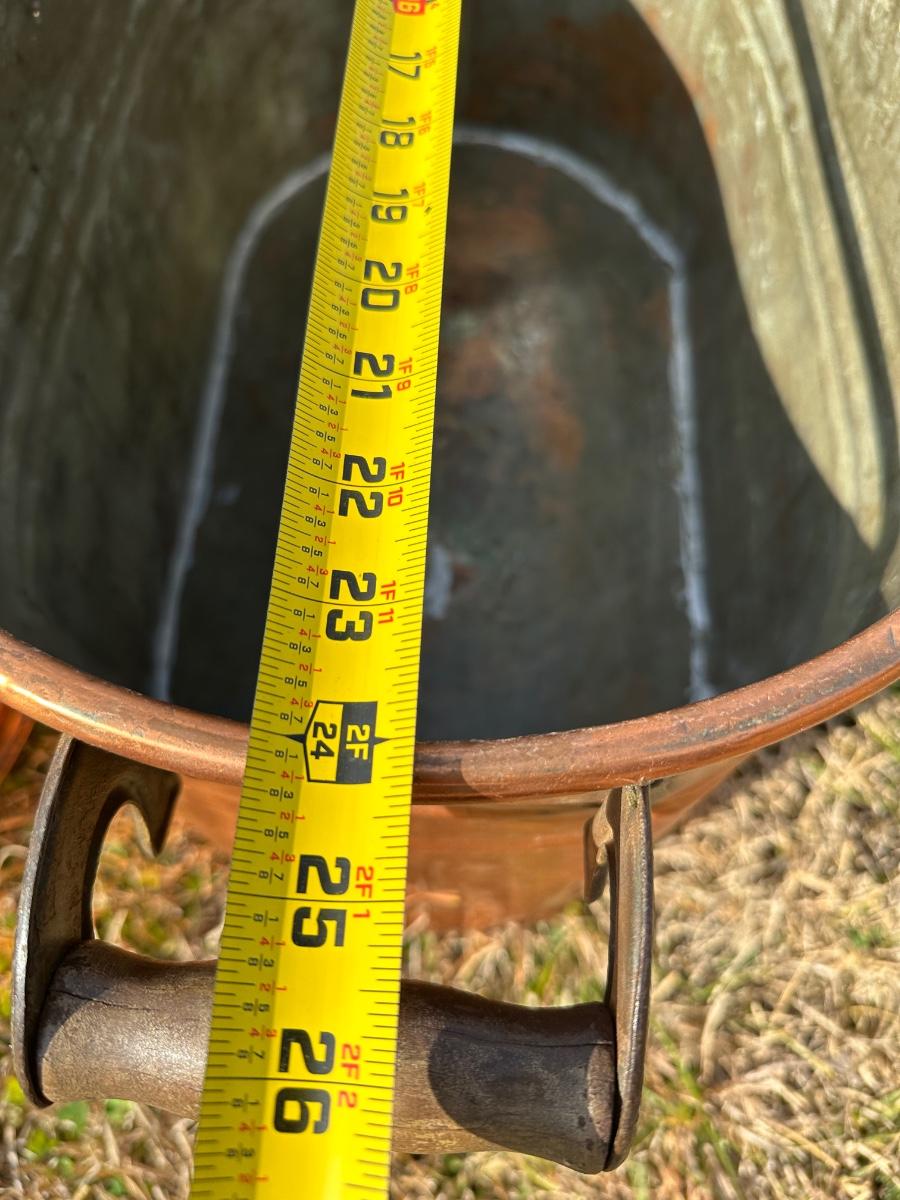 Authentic vintage Frisco copper wash boiler with original matching lid and wood handles.