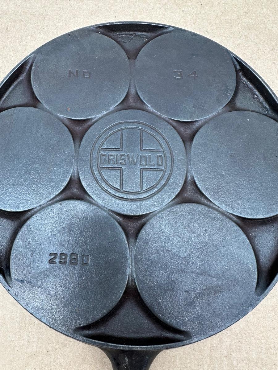 Vintage Griswold No. 34 Cast Iron Aebleskiver / Muffin Pan – Model 2980