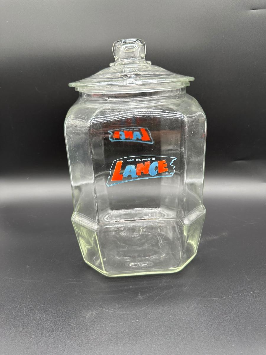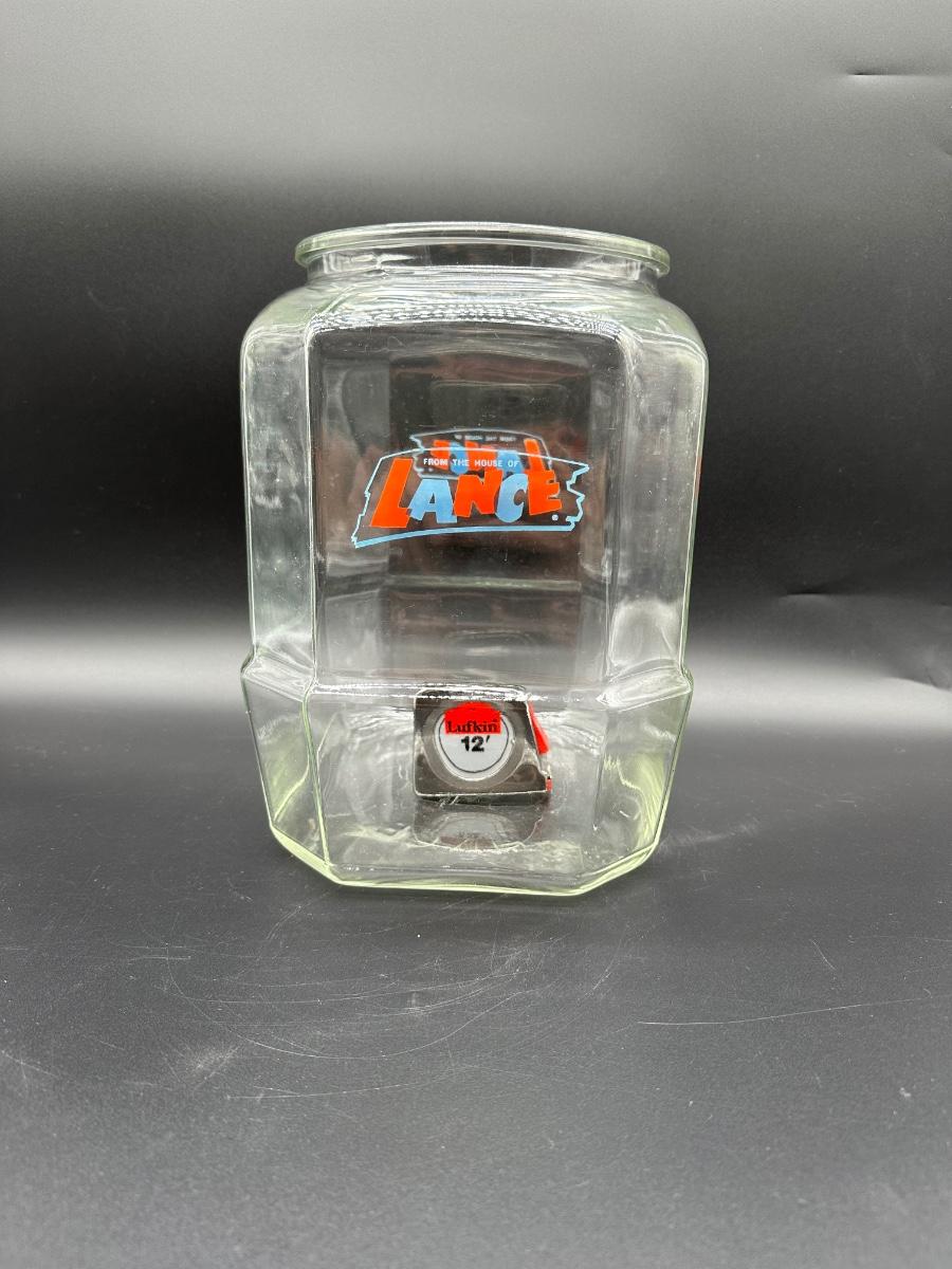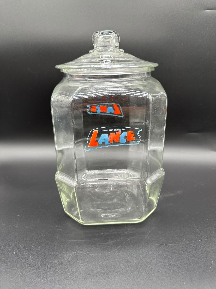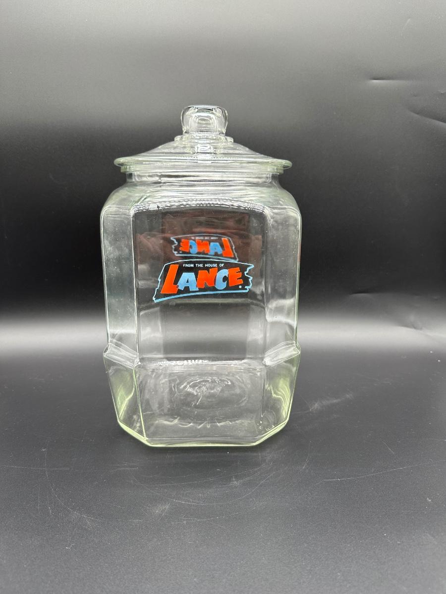 Original vintage Lance counter top display jar featuring the classic “From the House of Lance” advertising logo.